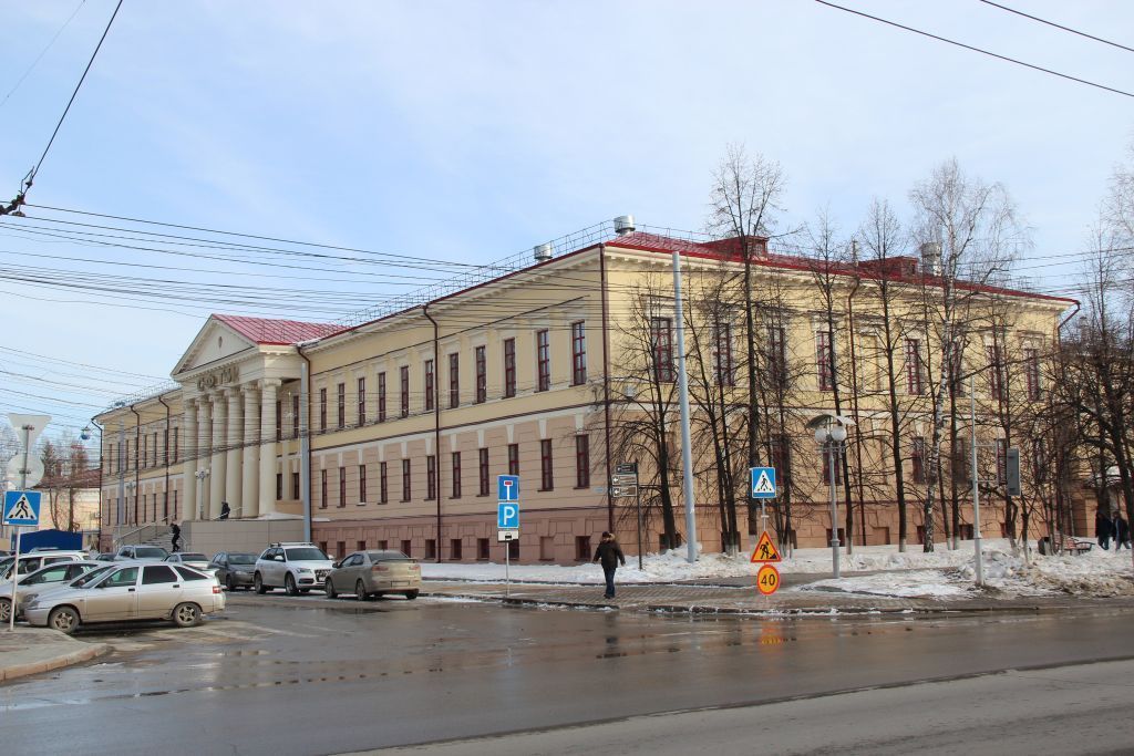 1. Градостроительные характеристики здания, участвующего в формировании исторической застройки одной из центральных площадей г. Томска - пл. Ново-Соборной (бывшая пл. Соборная, бывшая пл. Революции) периода первой половины XIX века. Здание занимает в квартальной застройке угловое положение и ориентировано главным северным фасадом по красной линии пл. Ново-Соборной, западным фасадом - по линии застройки пр. Ленина. С юго-западной стороны к зданию примыкает двухэтажная кирпичная пристройка начала XX века.2. Объемно-пространственная композиция здания «Ш» - образная в плане, состоит из единого двухэтажного объема с подвалом. Широкой стороной объем обращен на площадь, а три крыла здания развиты внутрь двора.3. Конфигурация крыши (вальмовая), ее конструкция, характер и материал кровельного покрытия (металл), высотные отметки по коньку, фронтону икарнизу крыши, местоположение, форма, размер и оформление слуховых окон, печные трубы, система водостоков и места расположения водосточных труб.4. Композиция и архитектурно-художественное оформление фасадов здания, выполненных в стиле классицизм на 1842 г. включая:- Симметричную композицию протяженного прямоугольной формы главного фасада здания в 27 осей окон, боковых фасадов в 9 осей окон и дворовых фасадов, обогащенных пластикой дополнительных выступающих объемов;- Оформление центральной части главного фасада выступающим портиком с колоннадой из шести массивных (высотой на два этажа) колонн ионического ордера с антаблементом и треугольным фронтоном, расположенных на высоком постаменте с многоступенчатым крыльцом, их габариты, местоположение, конструкция, материал, профиль сечения, форма и декоративное оформление;- Элементы декоративного оформления фасадов здания, включая: прямоугольный руст подвального этажа с вертикальными горизонтальными членениями, крупный ленточный руст первого этажа, междуэтажные профильные пояса с веерообразными замковыми камнями над оконными проемами первого и подвального этажей. Оформление окон второго этажа простыми рамочными наличниками и сандриками прямоугольной формы на фигурных кронштейнах. Карниз кровли здания и треугольного фронтона с оформлением выносной плиты модульонами и отдёлкой профильными тягами.- Местоположение, габариты входов, включая: парадный вход, расположенный по оси симметрии главного северного фасада с большим прямоугольным для двухстворчатых дверей проемом.- Местоположение, количество, размеры и форма оконных проемов: в уровне подвального этажа - небольшие квадратные, в уровне 1 -го этажа - прямоугольные, в уровне 2-го этажа - прямоугольные вытянутые по высоте.5. Материал и характер обработки фасадных поверхностей: гладкая штукатурка с окраской, рустовка;6. Колористическое решение фасадов здания на 1842 г.?7. Столярные оконные и дверные заполнения (заменены новыми, выполненными по сохранившимся аналогам) включая: их габариты, конфигурацию, материал - (дерево), рисунок переплетов рам (прямоугольных), подоконники, рисунок и форму филенок дверных заполнений, остекленные фрамуги, рисунок и профиль переплета фрамуги, элементы декоративного оформления.8. Сохранившаяся широкая парадная многомаршевая «Ф» - образная лестница с промежуточными площадками, расположенная в центральной части здания по оси симметрии вестибюля и ведущая на уро