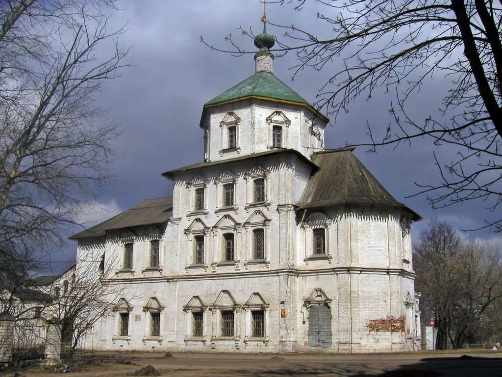 Местоположение:Церковь расположена в Затьмачье на пологом берегу Волги.Здание в целом: • Крупный двухэтажный объем: восьмерик на четверике с развитой по продольной оси объемной композицией трапезной с крыльцом, четверика колокольни.• Композиция трехъярусного четверика в два света во втором этаже, завершенного суженным восьмериком с пологой шатровой кровлей.• Пятигранный алтарь, пониженный к основному объему.• Форма и высотная отметка кровли всех объемов.• Ритмическое членение фасадов оконными проемами.• Форма и местоположение оконных проемов.• Материал: кирпич, обмазка, побелка, белый камень.Южный фасад.Композиция фасада:• Композиций восьмерик на четверике с трапезной, крытой лестницей, крыльцом, четвериком колокольни (Фото 1,2,3).• Композиция фасада основного объема в три оси (Фото 1,2,3).• Композиция фасада трапезной в две оси (Фото 1,2,3).• Композиция крытого крыльца с арочными проемами (Фото 6).• Ритмическое членение фасада оконными проемами (Фото 1,2,3).• Форма и местоположение оконных проемов (Фото 1,2,3,4,5).• Система вертикальных членений, образованная пилястрами, наличниками оконных проемов (Фото 1,2,3,4,5).• Система горизонтальных членений, образованная междуэтажным профилированным поясом, венчающими профилированными карнизами всех объемов (Фото 1,2,3,4,5).Декор фасада:• Пилястры по краям объемов, поставленные с выпуском углов (Фото 1-5).• Карнизы в завершении с раскреповками над пилястрами (Фото 1-5).• Междуэтажный профилированный карниз (Фото 1-6).• Наличники оконных проемов с полуколонками и высокими разорванными фронтонами (Фото 1-5).• Наличник центрального оконного проема четверика с резными белокаменными колонками с растительным орнаментом (Фото 4).Восточный фасад• Композиций восьмерик на четверике пониженным объемом пятигранного алтаря (Фото 7).• Ритмическое членение фасада оконными проемами (Фото 7).• Форма и местоположение оконных проемов (Фото 7).• Система вертикальных членений, образованная пилястрами, наличниками оконных проемов, форой кровли (Фото 7).Декор фасада: • Пилястры по краям объемов, поставленные с выпуском углов (Фото 7).• Карнизы в завершении с раскреповками над пилястрами (Фото 7).• Междуэтажный профилированный карниз (Фото 7).• Наличники оконных проемов с полуколонками и высокими разорванными фронтонами в восьмерике восьмерика (Фото 7).• Наличники оконных проемов с полуколонками и лучковыми перемычками в алтаре (Фото 7).Северный фасад.Композиция фасада:• Композиций восьмерик на четверике с трапезной, крытой лестницей, крыльцом, четвериком колокольни (Фото 8-10. ).• Композиция фасада основного объема в три оси (Фото 8).• Композиция фасада трапезной в две оси .• Композиция крытого крыльца с арочными проемами (Фото 10).• Ритмическое членение фасада оконными проемами .• Форма и местоположение оконных проемов.• Система вертикальных членений, образованная пилястрами, наличниками оконных проемов.• Система горизонтальных членений, образованная междуэтажным профилированным поясом, венчающими профилированными карнизами всех объемов.Декор фасада: • Пилястры по краям объемов, поставленные с выпуском углов (Фото ).• Карнизы в завершении с раскреповками над пилястрами (Фото 8-10).• Междуэтажный профилированный карниз.• Наличники оконных проемов с полуколонками и высокими разорванными фронтонами.Интерьер