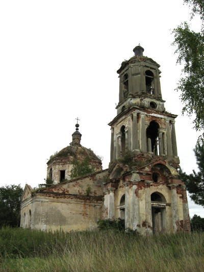 Градостроительные характеристики:- высотная доминанта села;- главный элемент силуэта застройки села.Объёмно-пространственная композиция: - односветный высокий четверик храма под световым восьмериком с закругленного в плане апсидой, с широкой трапезной с двумя приделами, полукруглого плана апсиды которых частично закрывают фасады четверика и с примыкающей трехъярусной колокольней (фото 2);- расположение церкви с западного края села, на холме, являющимся самой высокой точке села (фото 6);- конструкция, конфигурация, высотные отметки объемов, форма завершений.Архитектурные характеристики: Композиция и оформление фасадов:- высокий двусветный, расчлененный по высоте междуэтажным карнизом и в ширину фасадов плоскими пилястрами и лопатками, четверик храма со световым неравносторонним восьмигранником под полусферическим куполом с барабанчиком с главкой (фото 9);- высотой в первый ярус храма апсида, представляющая в плане квадрат с удлиненной полукругом восточной стороной, метрично расчлененная плоскими пилястрами и оконными проемами и покрытая полукуполом с юбкой (фото 10) ;- высотой в первый ярус храма широкая трапезная с приделами, декорированными по фасадам четырехколонными портиками и закругляющимися апсидами к четверику, полукруглого плана, приделом, закрывающим часть северного фасада четверика, с двускатной крышей, криволинейно закругляющейся над апсидами приделов (фото 12);- трехъярусная квадратного плана (в верхнем ярусе восьмигранная) колокольня с портиками на каждом ярусе, завершающаяся полусферическим куполом с барабанчиком (фото 12);- размер, форма и местоположение оконных и дверных проемов.Декор фасадов: - отделка фасадов известковой штукатуркой с окраской (фото 2);- валик кордона цоколя (фото 13);- проемы первого яруса четверика и апсиды с ярославскими перемычками, усиленными лучковой распорной аркой (фото 14);- плоские двухуровневые пилястры первого яруса четверика и апсиды, соединенными полуциркульным архивольтом (фото 15); - пояс архитрава, гладкий фриз и карниз с дентикулами апсиды, первого и второго яруса четверика (фото 16);- лопатки и, в простенках, плоские малорельефные накладки с «ушами» на втором ярусе четверика (фото 17); - итальянские с тосканскими колоннами и полуциркульной серединой окна (на восточной грани ложное окно) по типу серлианы на широких гранях восьмерика (фото 18);- оконные проемы с ярославскими перемычками на промежуточных узких гранях четверика (фото 19);- плоские пилястры и антаблемент восьмерика (фото 18);- восьмигранный барабанчик с арочными нишами и куполом в чешую (фото 5);- шаровидная с объемными «бриллиантовыми» шашками главка на ножке с крестом, декорированным из центра лучевым сиянием со звездами (фото 20);- проемы трапезной с полуциркульными перемычками;- широкие плоские лопатки трапезной (фото 11);- антаблемент трапезной с гладким фризом и треугольным фронтоном (фото 11);- клинчатые проемы и карниз притвора (фото 21);- высокие с энтазисом тосканские полуколонны нижнего яруса колокольни (фото 12); - двусветные проемы колокольни с прямоугольной нижней частью и полуциркульной фрамугой (фото 12);- круглые люкарны в полуциркульном тимпане первого яруса колокольни (фото 12);- антаблемент с карнизом большого выноса и разорванный треугольный фронтон первого яруса колокольни (фото 12);- портики второго яруса к
