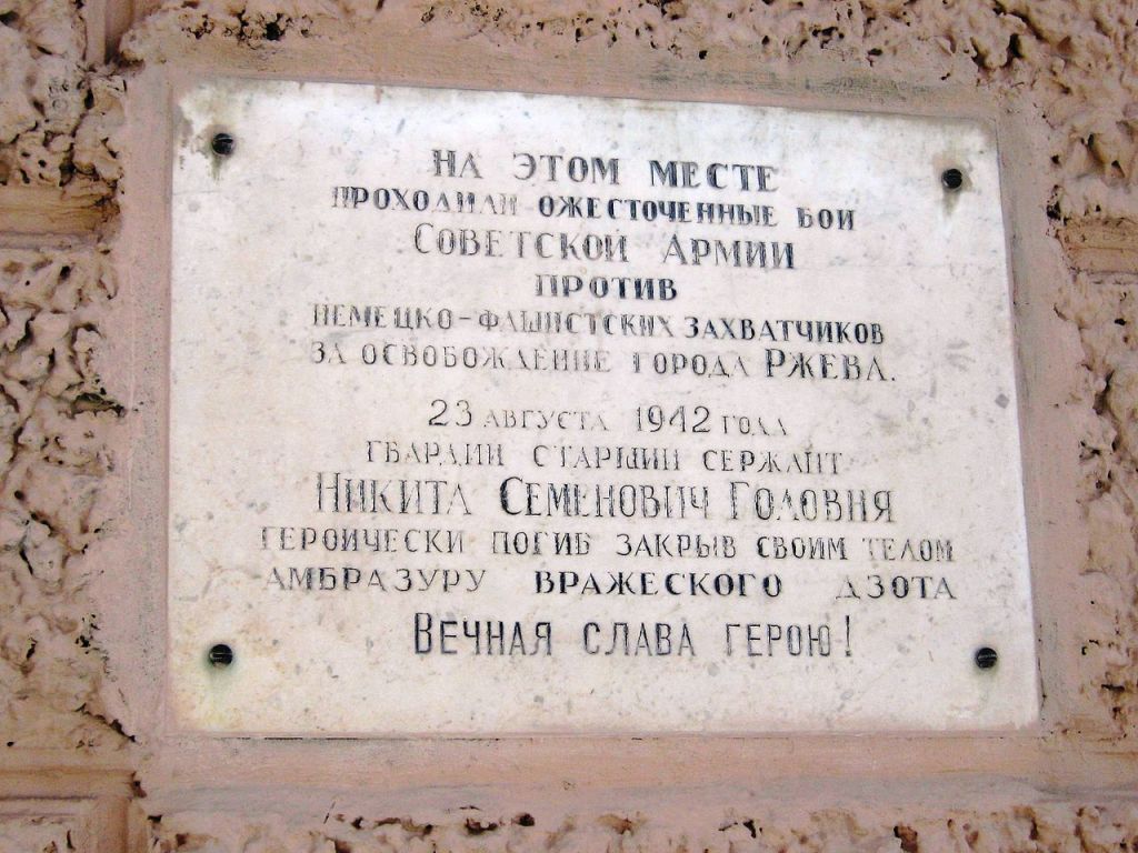Мемориальная доска в честь подвига гв. ст. сержанта Н.С. Головни