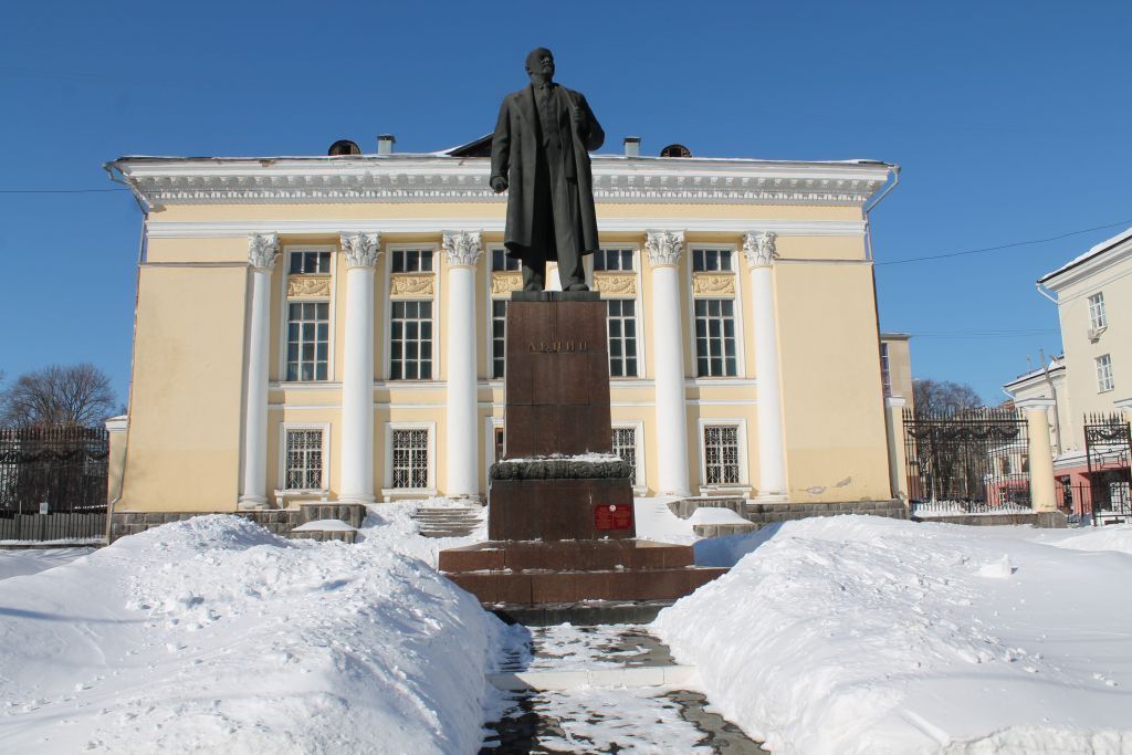 1. Местоположение и градостроительные характеристики:расположение Объекта, участвующего в композиционно-планировочной структуре улицы Советской города Ижевска, Национальной библиотеки Удмуртской Республики.2. Объемно-пространственная композиция: памятник 1958 года в пределах конфигурации плана (пешеходный подход и клумба) на высоту скульптуры, установленной на постаменте.3. Конструктивные особенности Объекта: стилобат, постамент, скульптура. Стилобат состоит из трёх рядов гранитных плит, уложенных ступеньками. Постамент пирамидальной формы, состоящий из двух частей по высоте, разделённых бронзовым венком, перевитым лентой. Бронзовый венок цельный, пустотелый. На постаменте имеется состоящая из отдельных букв надпись «ЛЕНИН». Скульптура изображает В.И. Ленина в полный рост, стоящего в спокойной естественной позе, левая рука держится за борт пальто, правая рука вытянута вдоль тела и сжимает свернутую газету. 4. Композиционное решение и архитектурно-художественное оформление: скульптура В.И. Ленина выполнена отливкой из бронзы в составе с опорной плитой. Архитектурное решение памятника имеет лаконичность форм, точную прорисовку деталей, выразительность силуэта.5. Колористическое оформление памятника: нижняя часть стилобата выполнена из плит тёмно-серого гранита, верхние две - из красного. Облицовка постамента - гранитные плиты красного цвета. Венок и скульптура - цвет состаренной бронзы. Буквы надписи цвета бронзы.6. Отделка фасадной части памятника: постамент монолитный железобетонный, облицован гранитными плитами со шлифованными лицевыми гранями на стальных связях.