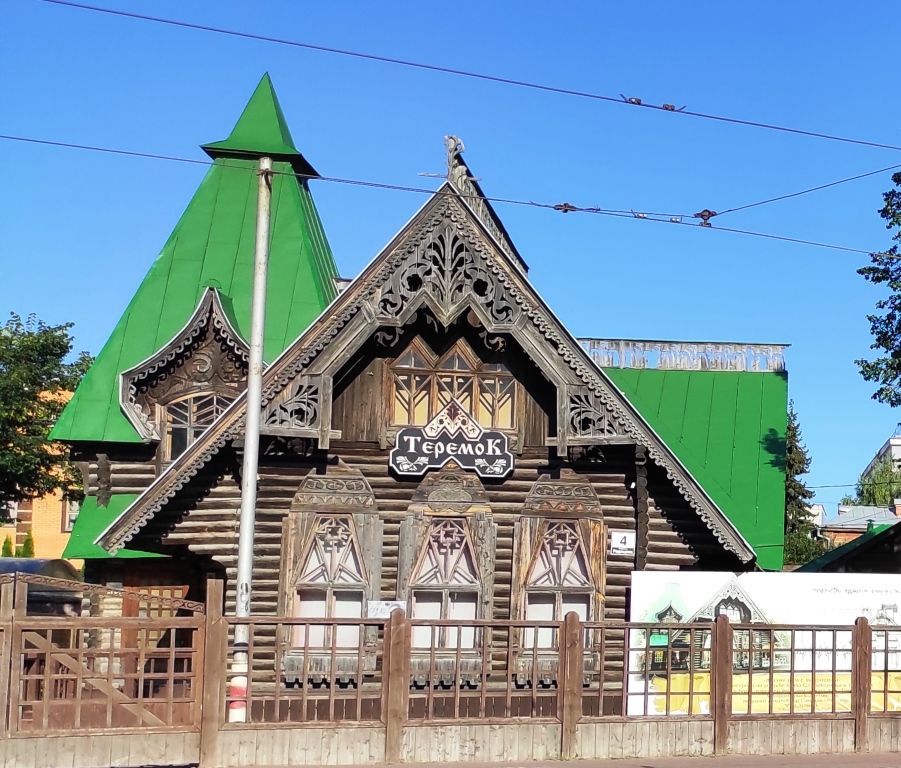 1. Местоположение и градостроительные характеристики Место расположения здания в современных границах участка (литера А): в исторической части города, в ряду малоэтажной застройки на ул. Радищева (бывшая Мартыновой), в глубине участка (с отступом от красной линии). Протяжённым фасадом вытянут вглубь участка, главным фасадом ориентирован на запад Этажность и высотные габариты здания (литера А): одноэтажный с мансардой Объёмно-пространственная структура здания (в редакции начала XX в.): прямоугольный в плане, состоящий из нескольких, прямоугольных в плане объёмов: основного, выходящего на улицу Радищева, и последовательно примыкающих к нему друг за другом с востока прирубов. Все объёмы перекрыты высокими двускатными крышами, выходящими фронтонами на север, восток, юг и запад. Объём лестничной клетки, расположенный с северо-запада, перекрыт высоким четырёхгранным шатром. С юга и севера здание дополнено открытыми террасами, выходящими на главный фасад. С востока и юга имеются балконы. По красной линии улицы Радищева расположено ограждение. 2. Инженерно-конструктивные характеристикиФорма (двухскатные и шатровая над объёмом лестничной клетки) крыши и материал кровельного покрытия: гладкие металлические листы с фальцевыми соединениями.Материал (дерево) и форма капитальных стен: бревенчатый сруб, рубленый «в обло»; материал (дерево) и форма (плоские) перекрытий; заполнения оконных и дверных проёмов в редакции начала XX в.: первоначальный материал (дерево) и форма (расстекловка и профилировка); форма оконных и дверных проёмов: трёхчастные окна с двухскатным завершением; трапециевидные; лучковые; прямоугольные;месторасположение, объёмно-пространственное решение, форма и материал лестниц: одномаршевая деревянная лестница по деревянным сводам с ограждением из балясин и волнообразного поручня, ведущая с первого этажа в помещения мезонина; одномаршевая деревянная лестница, ведущая с улицы на балкон мезонина, расположенная со стороны восточного фасада.Месторасположения (мезонин со стороны восточного и южного фасадов), материал (дерево) и форма (прямоугольные с ограждениями из деревянных балясин) балконов.Форма и материал (дерево) ограждения усадьбы, соответствующее облику начала XX в.: решетчатый забор на высоком сплошном цоколе, с калиткой и воротами. Материал (дерево), форма и месторасположения террас (с юга и севера, выходят на главный фасад) 3. Композиция и архитектурно-художественное оформление фасадов3.1. Стилистика: национально-романтическое направление модерна. 3.2. Композиция и архитектурно-художественное оформление фасадов (в редакции начала XX в.).Объёмная, глухая, рельефная, накладная и пропильная резьба в народном стиле:коньковый гребень с пропильной резьбой; причелины фронтонов и навесной декор с краевой и пропильной резьбой растительного орнаментаНавесной решетчатый декор фронтонов Кронштейны и кобылки шатра с краевой и пропильной резьбой Наличники глухой резьбы с цветочным и геометрическим орнаментным рельефом (три окна главного фасада); наличник в виде кокошника с килевидным завершением и подоконьем с глухой орнаментной резьбой (лучковое окно лестничного проёма); рамочные наличники прямоугольных окон северного, южного и восточного фасадов с глухой резьбой, дополненные профилированными сандриками-полочками с дв