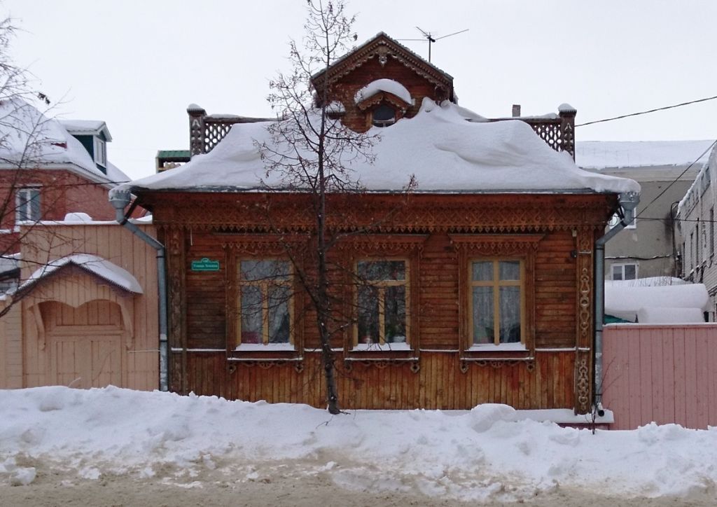 1.Местоположение и градостроительные характеристики Место расположения здания в современных границах участка: расположено в центральной части г. Ульяновска на улице Ленина (бывшая улица Московская), является важным звеном исторической застройки одной из старейших улиц города, входит в состав усадьбы, сформировавшейся в XIX в., главным фасадом ориентировано на северо-запад Этажность и высотные габариты здания: одноэтажное с полуподваломОбъёмно-пространственная структура здания (в редакции начала XX в.): основной объём дома – прямоугольный в плане, со стороны дворового фасада дополнен одноэтажным пристроем под односкатной крышей, со стороны северо-восточного фасада – деревянной остеклённой верандой с выходом на улицу Ленина2.Инженерно-конструктивные характеристикиФорма крыши (вальмовая) и материал кровельного покрытия (гладкие металлические листы с фальцевыми соединениями) Форма (прямоугольные и с двухскатным завершением), материал (дерево) и характер оформления (расстекловка и профилировка) столярных заполнений дверных и оконных проёмов, выходящих на главный фасад здания в редакции начала ХХ в. (пропорции окон при последнем ремонте изменены, при последующем ремонте возможно восстановление в прежних параметрах) Материал (дерево) и форма ограждения с воротами и калиткой 3. Композиция и архитектурно-художественное оформление фасадов3.1. Стилистика: русский стиль. 3.2. Композиция и архитектурно-художественное оформление фасадов (в редакции начала XX в.): Обшивка фасада: основная часть стены и слуховое окно обшиты по горизонтали, подоконный пояс – по вертикали; угловые филёнчатые лопатки с накладным резным декором; подоконный профилированный поясок; резной фриз; подзор ступенчатого венчающего карниза; парадная дверь – двухстворчатая, филёнчатая с накладным декором; двухскатный навес с резным фронтоном и кронштейнами; рамочные наличники с серьгами, ушками, декорированные накладной резьбой в виде плетёной косы, подоконными фартуками и профилированными сандриками-карнизами с пропильной резьбой; парапетные столбики;парапетная решётка;краевая и пропильная резьба слухового окна: лопатки; наличник; сандрик;причелины;профилированный венчающий карниз. Декор при ремонте частично утрачен, частично изменён. При последующей реставрации возможно воссоздание