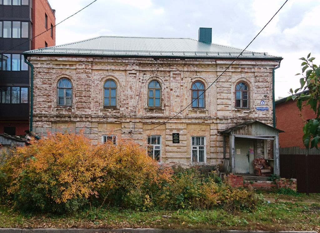 1.Местоположение и градостроительные характеристикиМесто расположения здания в современных границах участка: расположено в северной ча-сти исторической застройки г. Ульяновска на улице Красногвардейской (бывшая улица Мало-Казанская), главным фасадом ориентировано на северо-запад Этажность и высотные габариты здания: двухэтажное Объёмно-пространственная структура здания (в редакции начала XX в.): Г-образное в плане здание состоит из нескольких объёмов: основ-ной двухэтажный объём постройки 1889 г. – прямоугольный в плане под вальмовой крышей, вытянутый протяжённым фасадом вдоль красной линии улицы Красногвардейской (с отступом около 3 метров), со стороны дворового (юго-восточного) фасада дополнен двухэтажным пристроем (постройки 1890-х гг.) с пониженной высотой под односкатной крышей2.Инженерно-конструктивные характеристикиФорма крыши (вальмовая) и материал кровельного покрытия (гладкие металлические листы с фальцевыми соединениями) Материал капитальных стен (краснокирпичная кладка на известковом кладочном растворе) и пространственно-планировочная структура интерьеров (капитальные стены)Форма (прямоугольные и полуциркульные) и характер оформления (расстекловка и профилировка) столярных заполнений дверных и оконных проёмов, просматривающихся с улицы, со-ответствующие периоду начала ХХ века 3. Композиция и архитектурно-художественное оформление фасадов3.1. Стилистика: эклектика с элементами классицизма.3.2. Композиция и архитектурно-художественное оформление фасадов (в редакции начала XX в.): Лопатки: рустованные; с вертикальными нишами; профилированные наличники с замковыми камнями и подоконными сдвоенными нишами; подоконные, межэтажные и фризовый пояски;фризовый и межэтажный пояса с прямоугольными нишами Ленточный руст; венчающий ступенчатый карниз с дентикулами Утрачены: аттики на уровне крыши; кованые ограждения кровли; двухскатный навес с кованым декором парадного входа