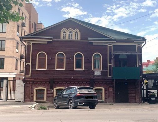 1.Местоположение и градостроительные характеристикиМесто расположения здания в современных границах участка: расположено в ряду малоэтажной исторической застройки г. Ульяновска на улице Красноармейской (бывшая улица Старая Казанская). Главным фасадом ориентировано на восток Этажность и высотные габариты здания: двухэтажноеОбъёмно-пространственная структура здания (в редакции начала XX в.): Г-образное в плане, состоит из основного прямоугольного объёма под двухскатной крышей, дополненного со стороны северного бокового фасада объёмом лестничного блока, выходящим на главный фасад здания, перекрытым самостоятельной комбинированной кровлей (восточная половина – односкатная, западная – двухскатная) 2. Инженерно-конструктивные характеристикиФорма крыши (сложноскатная: основной объём – двухскатная; в пристрое: восточная половина – односкатная, западная – двух-скатная) и материал кровельного покрытия (гладкие металлические листы с фальцевыми соединениями) Материал капитальных стен (на первом эта-же – из красного кирпича на известково-песчаном кладочном растворе, на втором этаже – бревенчатые, рубленные «в обло») и пространственно-планировочная структура интерьеров (капитальные стены) Форма (готические и с лучковой перемычкой, трёхчастное итальянское окно со стрельчатыми перемычками) и характер оформления (расстекловка и профилировка) столярных заполнений дверных и оконных проёмовМесто расположения, форма и материал балкона второго этажа (на металлических кронштейнах) 3. Композиция и архитектурно-художественное оформление фасадов 3.1. Стилистика: поздняя эклектика.3.2. Композиция и архитектурно-художественное оформление фасадов (в редакции начала XX в.): Дощатая горизонтально направленная об-шивка второго этажа; разорванный ступенчатый венчающий карниз, раскрепованный над лопатками; межэтажный ступенчатый карниз с город-чатым поясом; подоконный поясок; ленточный руст; лопатки, декорированные неглубокими нишами: со стрельчатыми перемычками – на первом этаже, с накладным резным де-кором – на втором Ступенчатый венчающий карниз; межэтажный ступенчатый карниз с поясом из декоративных ступенчатых кронштейнов Кованые ажурные кронштейны балкона второго этажа Наличники: стрельчатые профилированные; рамочные профилированные; трёхсторонние плоские; рамочные узкие; трёхсторонние узкие Профилированные стрельчатые сандрики;подоконная профилированная полочка Пропильная резьба причелин фронтона