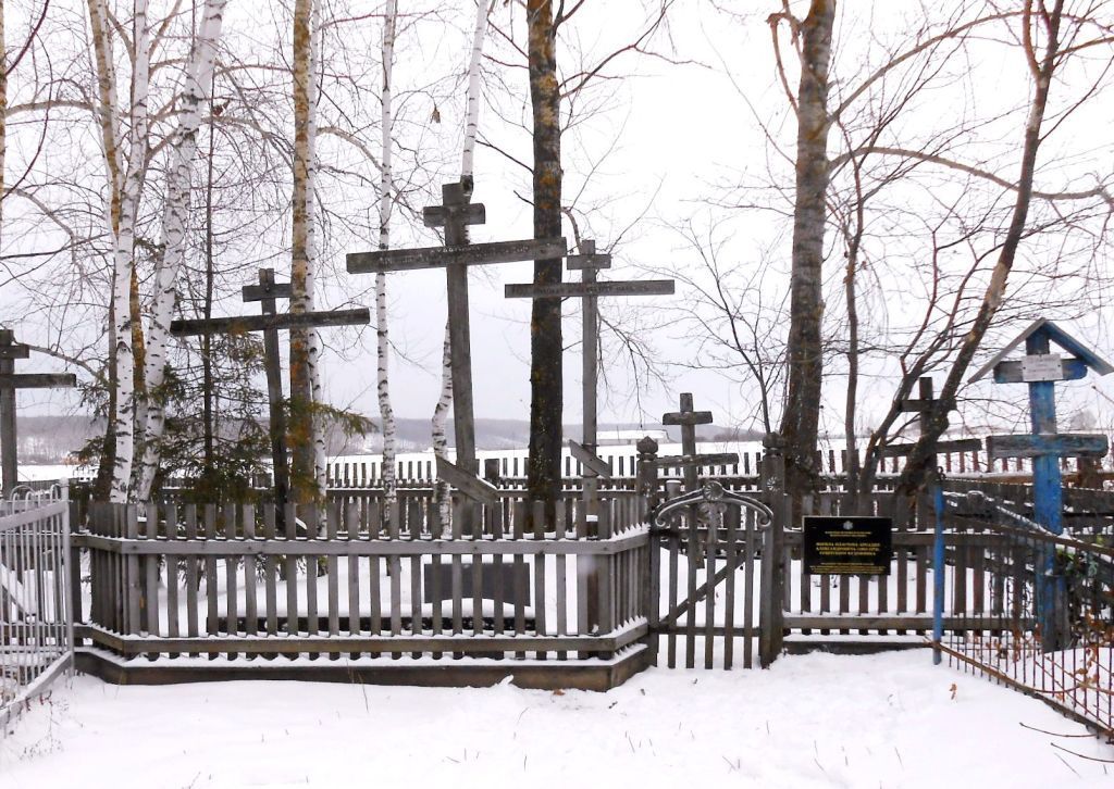 1. Градостроительные характеристики Место расположения захоронения в современных границах участка: на кладбище села Прислониха Карсунского района Ульяновской области (фото 1, 2).2. Инженерно-конструктивные и архитектурные характеристики2.1. Надгробная плита (фото 2-4).2.2. Надгробный крест (фото 1-3, 5, 6).2.3. Ограда с калиткой (фото 1, 7).2.4. Материал (серый гранит) и форма (прямоугольная трёхступенчатая, вторая ступень профилированная, третья – высокая из целого куска гранита) надгробной плиты. 2.5. Выгравированная надпись на надгробной плите «Художник Аркадий Александрович Пластов, 1893-1972 г.» (фото 2, 3, 4).2.6. Материал: дерево (дуб) надгробного креста. 2.7. Надпись на второй перекладине надгробного креста «Художник Аркадий Александрович Пластов, 1893-1972 г.» (фото 5, 6).2.8. Материал (деревянный штакетник) ограды с калиткой:2.9. Декор калитки: резные столбики, навершие калитки с глухой резьбой (фото 1, 7). 3. Могила с прахом усопшего (фото 1-4).
