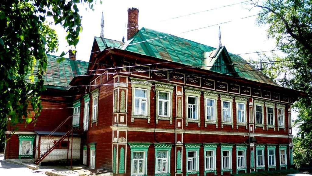 1. Местоположение и градостроительные характеристики Место расположения здания в современных границах участка:расположено в г. Барыше, на улице Гагарина, на возвышенности, в глубине участка с перепадом высот, с небольшим уклоном. В непосредственной близости от здания с восточной стороны расположен лесной массив. Главным фасадом здание ориентировано на юго-запад Этажность и высотные габариты зданияОбъёмно-пространственная структура здания:двухэтажное, С-образное в плане, под сложной вальмовой крышей, с выходящими на все стороны двухскатными фронтонами, объём (в центре юго-западного фасада ранее располагалась деревянная веранда, ныне утрачена). Со стороны северо-восточного фасада к зданию примыкает двухэтажный объём в две световых оси под двускатной крышей2. Инженерно-конструктивные характеристикиФорма крыши – над С-образным объёмом высокая сложная вальмовая крыша с падугами на карнизах, с двухскатными фронтонами, которые выходят на все фасады, на юго-западном фасаде фронтоны расположены по центру исторических торцевых фасадов. Фронтоны увенчаны шпилями. Над объёмом, примыкающим со стороны северо-восточного фасада – высокая двускатная крыша.Материал кровельного покрытия – гладкие металлические листы с фальцевыми соединениями.Материал капитальных стен – дерево.Форма (прямоугольные) и характер оформления (расстекловка) столярных заполнений оконных проёмов Арочные стеновые проёмы в помещениях 3. Композиция и архитектурно-художественное оформление фасадовОбшивка фасадов – горизонтально направленная доска.Наличники – с небольшими ушками и выпусками в виде кистей завершены сандриками, снизу ограниченными профилированными полочками, сверху – профилированными карнизами, центральная часть украшена накладным геометрическим декором в виде треугольников из реечек. Боковые грани в верхней и нижней частях отмечены пропильным декором в виде косых крестиков и украшены накладными колосьями. Фартук ограничен по вертикали тонкими поясками с глухой резьбой в виде змеек, по центру заполнен геометрическим накладным декором – треу-гольниками из реечек Сандрик – двухскатный, профилированный, отмечен по центру накладным декором в виде полусолнцаСандрик над тремя окнами, ограниченный со всех сторон профилированными поясками, отмечен по центру перспективным фронтоном со вписанным в него накладным декором в виде полусолнца, с флангов расположен декор в виде солнца Профилированный карниз большого выноса, опирающийся на резные деревянные кронштейны Фриз, украшенный филёнками с накладной резьбой, расположенными между кронштейнами.Профилированный межэтажный пояс Резные кронштейны с гранёными гирьками и накладными квадрами бриллиантового руста Двускатные фронтоны с навесным декором в виде перекрещенных реек, центральная из которых снизу завершена резной гирькой, и резными шпилями Выпуски сруба, обшитые вертикально направленной доской и украшенные накладным декором из профилированных реек, фигурных филёнок, бриллиантового руста, полусолнц и колосьев 4. Предметы интерьеровРезные балясины лестницы, расположенной в холле первого этажа Лепная потолочная розетка Тянутый штукатурный декор стен и потолков Кессонные потолки Настенный лепной декор Пилястра Кафельная печь с лепными карнизом и фризом Мемориальная до