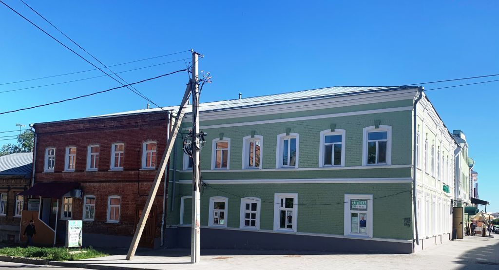 1. Местоположение и градостроительные характеристики зданияРасположено в исторической части города, является важным градостроительным звеном застройки, формирует угол двух старейших улиц города: ул. Федерации (бывшая ул. Лосевая) и ул. Красногвардейской (бывшая ул. Малая Казанская). Главным западным фасадом обращён на ул. Федерации. Протяжённый, не-сколько выступающий за красную линию северный фасад выходит на ул. Красногвардейскую. Окружён одно- и двухэтажной застройкой Этажность и высотные габариты здания: одно-двухэтажное с подваломОбъёмно-пространственная композиция здания: здание состоит из трёх объёмов, пристроенных друг к другу по оси запад-восток: первоначальный прямоугольный в плане объём (угловой кирпичный) под вальмовой крышей с верандой со стороны двора на уровне второго этажа, к нему с запада (по ул. Красноармейской) примыкает двухэтажный прямоугольный объём, дополненный с юга (со стороны двора) прямоугольным двухэтажным объёмом под вальмовой крышей, и с запада (по ул. Красноармейской) дом продолжен одноэтажным с полуподвалом пристроем (деревянный) под трёхскатной крышей 2. Инженерно-конструктивные характеристикиФорма крыши (вальмовая над кирпичными объёмами, трёхскатная над деревянным). Материал капитальных стен кирпичных объёмов – красный кирпич на из-вестково-песчаном кладочном растворе.Обшивка доской: материал (дерево), способ обработки (доски с профилем по краю), размерность (ширина досок обшивки).Форма (прямоугольные и с лучковой перемычкой), материал (дерево) и характер оформления (расстекловка) столярных заполнений оконных проёмов со стороны уличных фасадов.Форма (прямоугольная), характер оформления (филёнчатые) и материал (дерево) столярных заполнений дверных проёмов со стороны уличных фасадов 3. Композиция и архитектурно-художественное оформление фасадов3.1. Стилистика: эклектика. 3.2. Композиция и архитектурно-художественное оформление фасадов (в редакции начала XX в.):Угловой объём:лопатки гладкие на уровне первого этажа и декорированные усечённым бриллиантовым рустом на уровне второго;венчающий профилированный карниз, раскрепованый на лопатках; полоса фриза с горизонтальными нишами;межэтажный и подоконный профилированные пояски;трёхсторонние профилированные наличники лучковых окон второго этажа с замковыми камнями, декорированными растительным мотивом;трёхсторонние профилированные наличники окон первого этажа;прямоугольные сандрики, декорированные штукатуркой «под шубу».Центральный объём:венчающий ступенчатый карниз; фризовый, подоконные и междуэтажный пояски;веерная кладка окон;неглубокие подоконные прямоугольные ниши первого этажа. Деревянный объём:Обшивка: вертикально направленная доска, декорированная пропильной резьбой в межоконном пространстве, горизонтальная профильная доска в простенках;лопатки, декорированные накладным декором в виде кольца с каннелюрами, в нижней части – бриллиантовым рустом;карниз среднего выноса;широкий триглифный фриз, декорированный гуттами, с накладной резьбой геометрического орнамента;подоконный профилированный поя-сок;наличники с профильными сандриками-карнизами, опирающимися на рез-ные кронштейны, элементами накладного декора геометрического очертания и выпусками