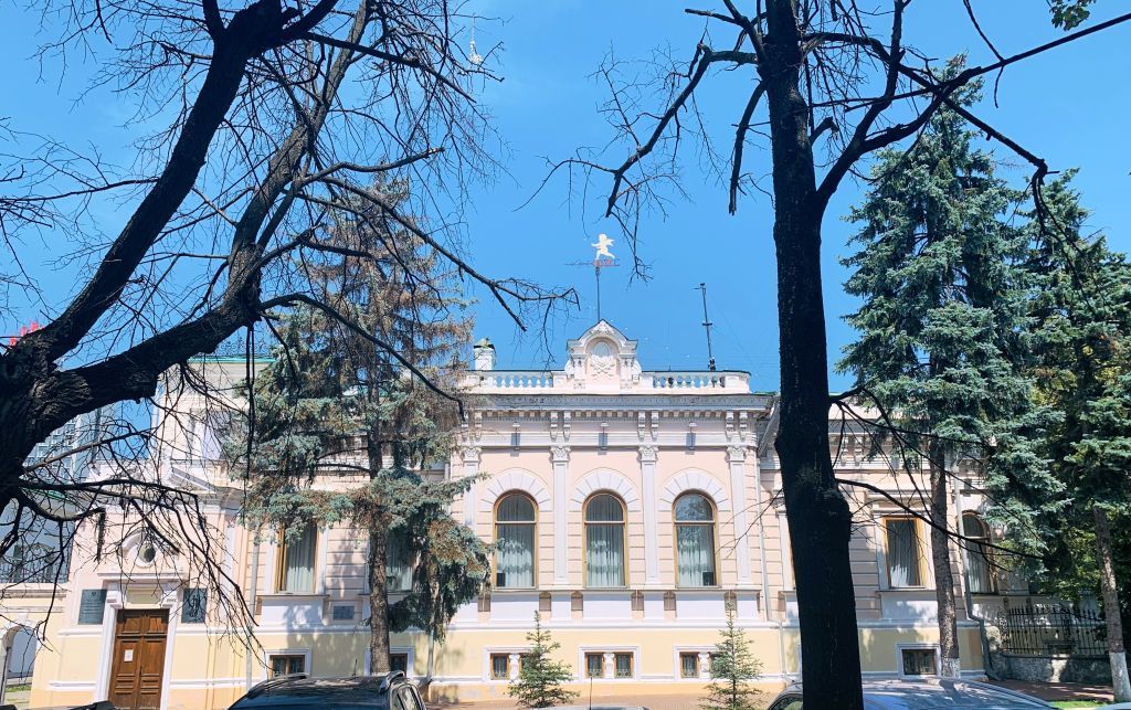 1. Градостроительные характеристики 1.1. Место расположения здания в современных границах участка: расположено в историческом центре города на угловом участке пересечения ул. Гимова (бывшая ул. Никольская) и площади 100-летия со дня рождения В.И.Ленина (бывшая ул. Стрелецкая), главным фасадом ориентировано на юг (фото 1-13).1.2. Этажность и высотные габариты здания: одноэтажное с мезонином на высоком цокольным этаже (фото 1-13).1.3. Объёмно-пространственная структура здания (в редакции начала XX в.): Г-образное в плане здание под комбинированной скатной крышей состоит из нескольких одноэтажных на цокольном этаже объёмов. Основной (квадратный в плане) объём соединён небольшим переходом с северным флигелем и фланкирован двумя пристроями: с запада – одноэтажным объёмом парадного входа, с востока – одноэтажным на цокольном этаже объёмом «зимнего сада» с примыкающим к нему с севера крыльцом. Мезонин, надстроенный над северной половиной основного объёма, выходит левым флангом на открытую террасу с портиком, расположенную над объёмом парадного входа, правым флангом – в эркер и на балкон. Флигель со стороны западного фасада дополнен тамбуром входа под односкатной крышей (фото 1-13). 1.4. Планировочная структура здания (в редакции начала ХХ в.): вдоль южного и восточного фасадов основного объёма – анфиладная, в северной части основного объёма, во флигеле и мезонине – коридорная. 1.5. Местоположение и объёмно-пространственное решение лестниц: парадная в вестибюле первого этажа; входные со стороны западного и восточного фасадов; вспомогательные, расположенные в центре здания; ведущая из помещений первого этажа в помещения мезонина; ведущая в помещения цокольного этажа расположенная в северной части здания (фото 9-11, 41, 44, 47, 58, 60, 61, 65).2. Инженерно-конструктивные характеристики2.1. Материал несущих стен: краснокирпичная кладка оштукатурена и окрашена (фото 1-13). 2.2. Материал облицовки цокольного этажа и декора: белый камень (фото 37). 2.3. Форма перекрытий: плоские, над цокольным этажом – лотковые своды (фото 117, 121, 126, 128, 132, 136, 147, 148).2.4. Оконные и дверные проёмы: прямоугольной, арочной, круглой формы и с лучковой перемычкой (фото 1-13, 32, 34, 35, 37-45, 47, 49-53, 75, 79-85, 134, 122). 2.5. Заполнения оконных и дверных проёмов в редакции начала XX в.: первоначальные материал (дерево); форма (расстекловка и профилировка); латунные оконные и дверные приборы (фото 1-13, 34, 35, 37-45, 47, 49-53, 75, 79-85, 134, 122).2.6. Материал (кирпичные и оштукатуренные столбы и цоколь, металлические кованные с элементами литья решётки) и форма примыкающего ограждения, ворот и калитки (фото 1-4, 6, 12-18).2.7. Материал и форма кованых ограждений балконов, крыльца, парапета, оконных решёток (фото 4, 8, 9, 23, 24, 30, 40, 44, 46-48, 52, 67, 68).2.8. Материал (металл) и форма переплёта и ограждения западной остеклённой веранды (фото 8-11).2.9. Материал кровельного покрытия: гладкие металлические листы с фальцевыми соединениями (фото 5-10, 26).2.10. Колонны: коринфского ордера между помещениями № 7 и 8 первого этажа и на балконе второго этажа; композитного ордера в фойе первого этажа (фото 12, 34-36, 118, 121).2.11. Стеновые проёмы: арочные и лучковые (фото 146, 157).2.12. Форма и материал лестниц и их ограждений: парадная в вестибюле первого этажа (облицована мрамором, ограждения кованые); входная со стороны восточного фасада (облицована метлахской плиткой, ограждения кованые); вспомогательная, вед
