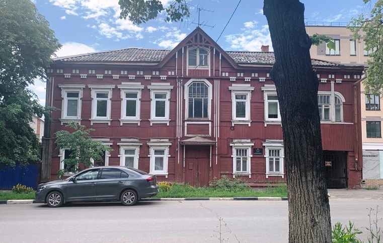 1. Местоположение и градостроительные характеристикиМесто расположения здания в современных границах участка: расположено на севере исторической части г. Ульяновска на улице Красноармейской (бывшая улица Старая Казанская). Главным фасадом ориентировано на восток Этажность и высотные габариты здания: двухэтажное Объёмно-пространственная структура здания (в редакции начала XX в.): Г-образный в плане объём под сложноскатной кровлей. Со стороны северного фасада на уровне второго этажа примыкает объём, опирающийся на кирпичную стену, под которым расположен проезд к усадьбе 2. Инженерно-конструктивные характеристикиФорма крыши (сложноскатная) и материал кровельного покрытия (гладкие металлические листы с фальцевыми соединениями) Материал капитальных стен (бревенчатые, рубленные «в обло») и пространственно-планировочная структура интерьеров (капитальные стены, под северным пристроем – проезд, северная стена – кирпичная, брандмауэрная)Форма (прямоугольные, лучковые и трапециевидные) и характер оформления (расстекловка и профилировка) столярных заполнений дверных и оконных проёмов 3. Композиция и архитектурно-художественное оформление фасадов 3.1. Стилистика: модерн.3.2. Композиция и архитектурно-художественное оформление фасадов (в редакции начала XX в.): Обшивка вертикально и горизонтально направленной доской, венчающей профилированный карниз, фланкированными парными декоративными кронштейнами и триглифо-метопным фризом; лопатки с вертикальными рейками, имитирующими каннелюры; декор из реек, имитирующий балюстраду и подоконную нишу Резные кронштейны навеса; профилированный карниз Навесная резьба и сдвоенные кронштейны с пропильной резьбой тимпана фронтона Наличники: рамочные профилированные с выпусками, профилированными подоконными полочками и двойными сандриками (профилированные сандрики-полочки и прямоугольные над ними) на кронштейнах с пропильной резьбой; рамочные; рамочные с фигурными выпусками и профилированными сандриками с двухскатными завершениями и навесным декором; трёхсторонний с сандриком подковообразной формы и триглифами; сандрик подковообразной формы; каннелированные пилястры 4. Элементы оформления интерьеровПрофилированный тянутый декор стен и потолков