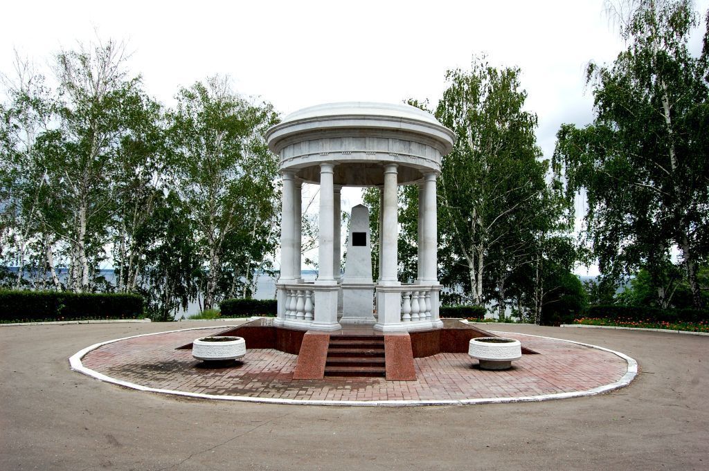 1. Градостроительные характеристики1.1. Место расположения памятника в современных границах участка: расположена на обрыве, на берегу р. Волга, в парке «Винновская роща» (фото 1-3).1.2. Высотные габариты памятника 5,5 метров (фото 1-3).1.3. Объемно-пространственная структура (фото 1-3): беседка-ротонда радиусом 1,88 метров, на круглой площадке стилобата установлены колонны, поддерживающие купол и антаблемент, со стилобата в диаметрально противоположных направлениях спускаются две пары лестниц, образующих четыре входа на площадку. В центре беседки установлен обелиск (высота 1,73 метра) на прямоугольном пьедестале. Ориентирована беседка по сторонам света (фото 4). 2. Инженерно-конструктивные характеристики2.1. Материал и форма (круглая) стилобата.2.2. Материал облицовки (гранит) и форма входных лестниц.2.3. Материал (мрамор) и форма (круглые в сечении на прямоугольных базах) колонн. 2.4. Материал (мрамор по металлическому каркасу) и форма купола.2.5. Материал (мрамор) и форма ограждения.2.6. Материал (мрамор) и форма обелиска и пьедестала.3. Архитектурные характеристики3.1. Колонны дорического ордера (фото 5).3.2. Антаблемент, декорированный триглифами, регулами и гутами (фото 6).3.3. Профилированный карниз антаблемента (фото 6).3.4. Барьер из точёных балясин с профилированными цоколем и перилами (фото 7).3.5. Мемориальные доски, соответствующие периоду начала ХХ века:на западной грани обелиска помещена бронзовая мемориальная доска прямоугольной формы с надписью «Беседка-памятник установлена в 1912 году в честь 100-летия со дня рождения И.А.Гончарова» (фото 8);на восточной грани находится бронзовая мемориальная доска прямоугольной формы с надписью: «Памятник культуры Гончаровская беседка» (фото 9).