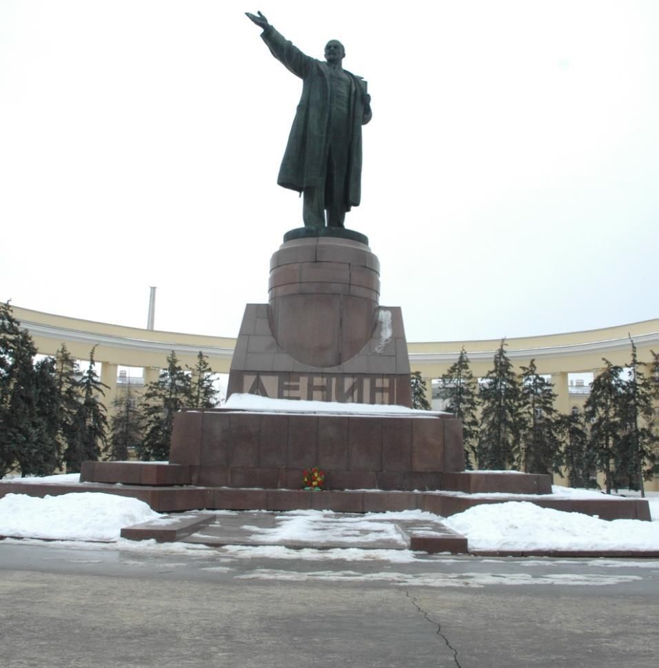 Предметом охраны объекта культурного наследия регионального значения \"Памятник В.И.Ленину\", расположенного по адресу: Волгоградская область, г. Волгоград, пл. им. В.И.Ленина, являются:местоположение: в границах земельного участка с кадастровым номером 34:34:040019:1232, расположенного по адресу: Волгоградская область, г. Волгоград, пл. им. В.И.Ленина;объемно-пространственное решение: памятник на постаменте (установлен в 1960 году, скульптор Е.В.Вучетич, архитектор Г.А.Захаров);памятник: ростовая бронзовая скульптура, изображающая В.И.Ленина – голова вполоборота повернута вправо, правая рука поднята, левая согнутая в локте, сжимает лацкан пальто;постамент:- многоступенчатый постамент сложной формы, состоящий из ступенчатого основания, усеченной пирамиды и цилиндра, облицованный гранитными плитами и блоками;- текст надписи, выполненный крупными контррельефными буквами, на лицевой стороне постамента:\"ЛЕНИН\";Г-образные клумбы, обрамленные гранитными парапетами.