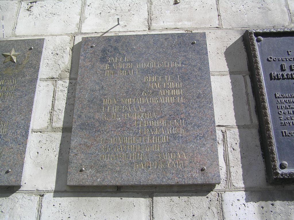 Место, где в дни Сталинградской битвы сражались воины 62-й армии и ополченцы завода "Баррикады"