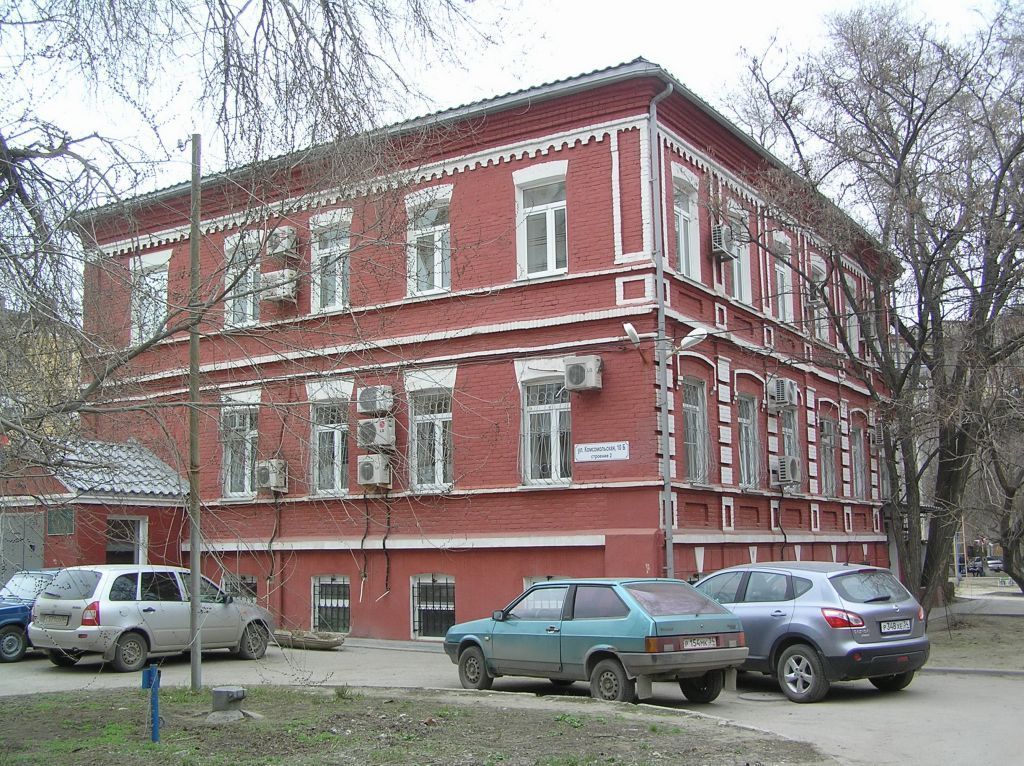 Местоположение объекта культурного наследия и градостроительные характеристики: отдельно стоящее здание, внутри двора квартала в границах: пр-кт им. В.И. Ленина, ул. Комсомольская, ул. Мира, ул. им. Симбирцева в Центральном районе Волгограда;объемно-пространственная и планировочная композиция прямоугольного в плане, двухэтажного кирпичного с цокольным этажом объема,ориентированного продольной осью по линии запад - восток;высотные отметки крыши;архитектурно-композиционные решения фасадов:- ритм, характер и структура вертикальных и горизонтальных членений фасадов, изначальное расположение, количество, размеры, конфигурация проемов;- южный фасад и его декоративное убранство: трехчастное деление по вертикали, бровка цоколя в форме полочки, раскрепованные подоконные кирпичные бровки и межэтажный карниз, венчающий карниз, фриз с аркатурным поясом, членение по горизонтали лопатками, декор лопаток на первом этаже - руст, на втором этазке - филенки, декор оконных проемов - первый этаж - лежачие филенки, лучковые бровки, второй этаж - лежачие филенки, лучковые перемычки в плоскости фасада;- западный фасад и его декоративное убранство: трехчастное деление по вертикали, бровка цоколя в форме полочки, раскрепованные подоконные кирпичные бровки и межэтажный карниз, фриз с аркатурным поясом, лопатки на флангах, лучковые перемычки оконных проемов в плоскости фасадов;- северный фасад и его декоративное убранство: лопатки на флангах, лучковые перемычки оконных проемов в плоскости фасадов;- восточный фасад и его декоративное убранство: лучковые перемычки оконных проемов в плоскости фасадов;материалы и характер обработки фасадных поверхностей: стены из глиняного кирпича, открытая кирпичная кладка, окраска по кладке;цветовое решение фасадов;пространственно-планировочная структура интерьеров в пределах капитальных стен и опорных конструкций;капитальные стены, опорные конструкции, перекрытия, стропила и другие конструктивные элементы, формирующие несущий каркас здания, их раположение, конструкция и материалы.