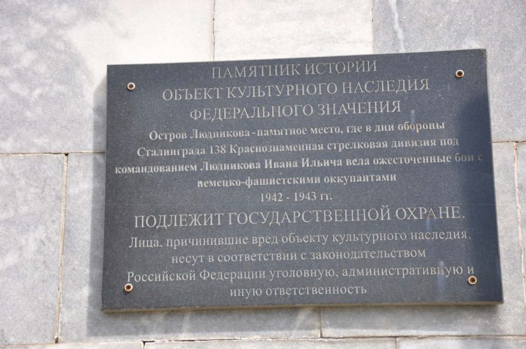 Остров Людникова - памятное место, где в дни обороны Сталинграда 138-я Краснознаменная стрелковая дивизия под командованием Людникова Ивана Ильича вела ожесточенные бои с немецко-фашистскими оккупантами