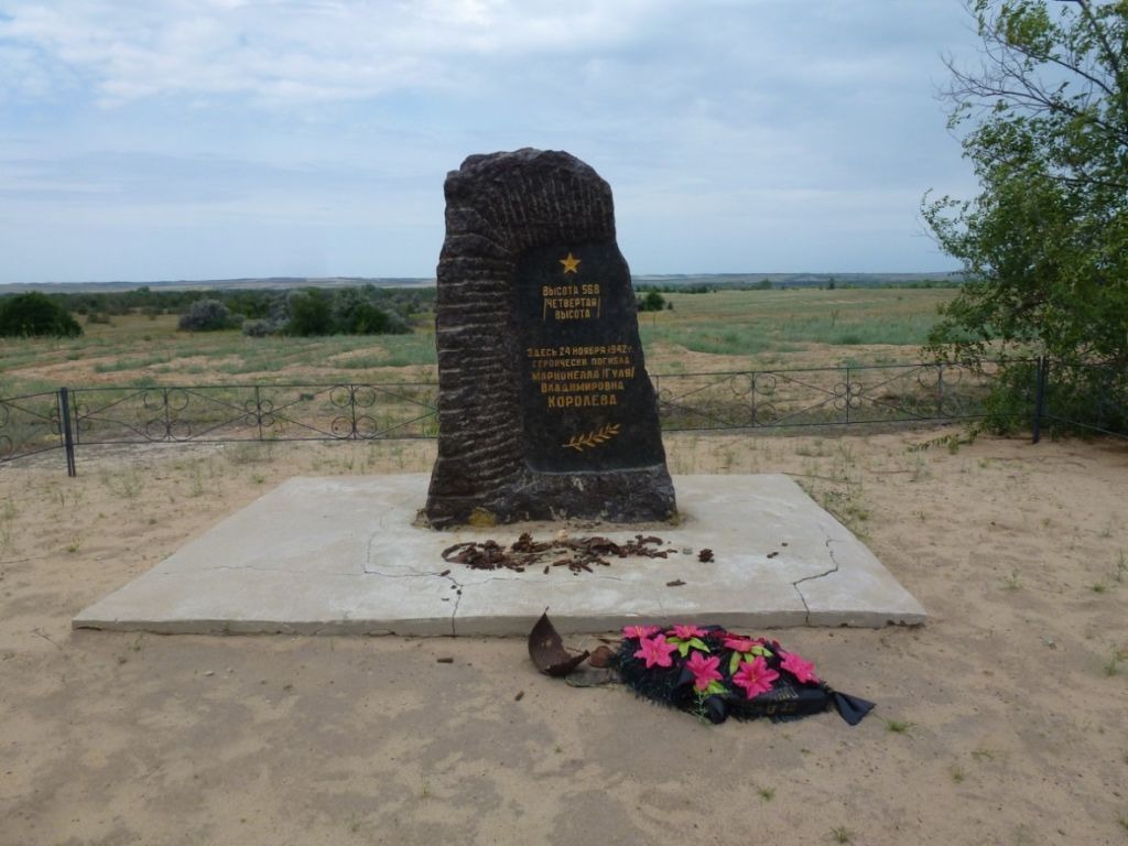 Предметом охраны объекта культурного наследия регионального значения \"Место гибели санинструктора Королевой М.В. /Гули/\", расположенного по адресу (местонахождение): Волгоградская область, Городищенский район, х. Паньшино, 4 км на юго-юго-запад (далее – достопримечательное место), являются:местоположение достопримечательного места: Волгоградская область, Городищенский район, 4 км на юг-юго-запад от х. Паньшино, в границах земельного участка с кадастровым номером 34:03:000000:13;ландшафтные характеристики достопримечательного места: холм высотой 56,8 м с природным рельефом и характерный исторический ландшафт периода Сталинградской битвы, сохранивший видимые следы ожесточенных боев;памятный знак из натурального камня с текстом мемориальной надписи, рельефными изображениями пятиконечной звезды и лавровой ветви, обозначающий достопримечательное место:\"Высота 56,8(Четвертаявысота)Здесь 24 ноября 1942 г.героически погиблаМарионелла (Гуля)ВладимировнаКоролева\".Фотографическое изображение достопримечательного места приведено в приложении к настоящему предмету охраны.