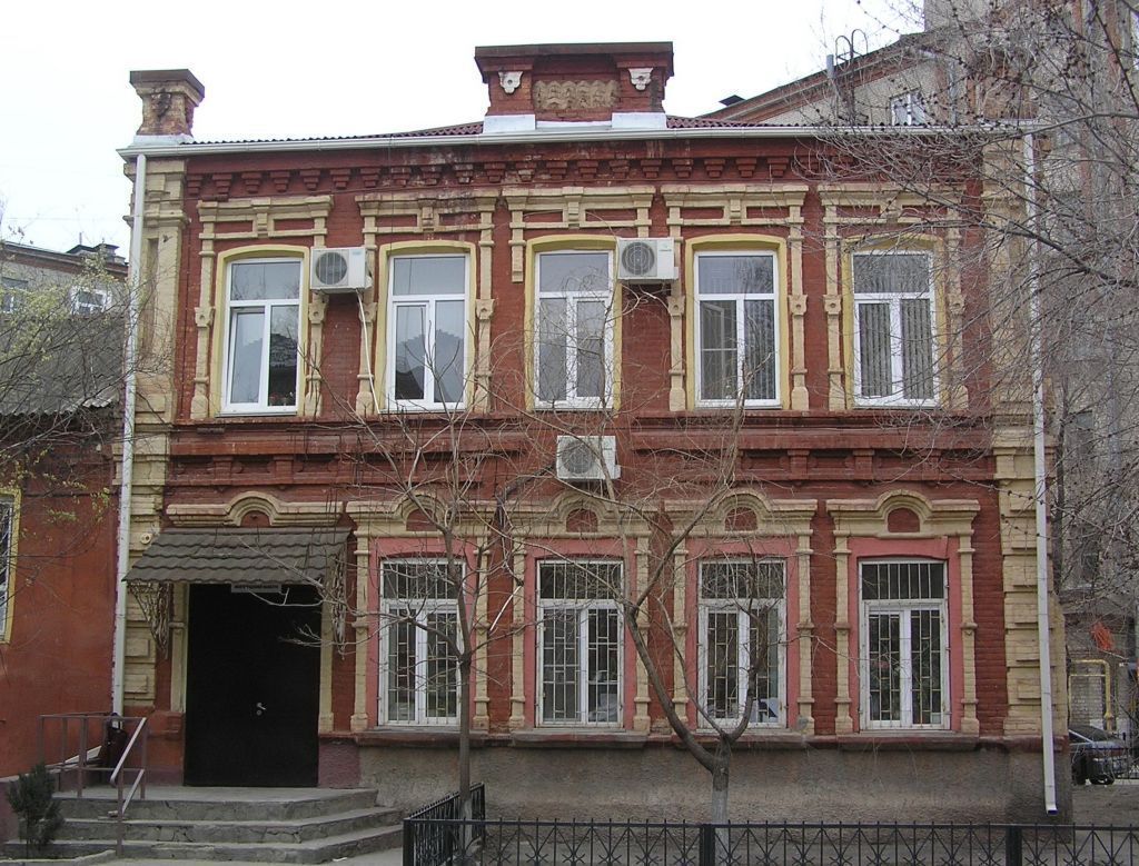 Местоположение объекта культурного наследия и градостроительные характеристики: отдельно стоящее здание, внутри двора квартала в границах: пр-кт им. В.И. Ленина, ул. Комсомольская, ул. Мира, ул. им. Симбирцева, в Центральном районе Волгограда;объемно-пространственная и планировочная композиция прямоугольного в плане, двухэтажного кирпичного с подвалом объема, ориентированного продольной осью по линии запад - восток;высотные отметки крыши;архитектурно-композиционные решения фасадов:- ритм, характер и структура вертикальных и горизонтальных членений фасадов, изначальное расположение, количество, размеры, конфигурация проемов;- северный фасад и его декоративное убранство: раскрепованный межэтажный пояс, профилированные подоконные бровки, венчающий карниз со стилизованными кронштейнами, обрамления оконных проемов в виде стилизованных колонок, очелий, сандриков, замковых камней, рустованные угловые лопатки первого этажа, стилизованные угловые пилястры второго этажа, аттик с декором в виде поребрика, угловых лопаток, угловые тумбы на крыше;- западный фасад и его декоративное убранство: западный фасад -раскрепованный межэтажный пояс, профилированные подоконные бровки, профилированный венчающий карниз, сстилизованных лучковых бровок;- южный фасад и его декоративное убранство: межэтажная кирпичная тяга, лучковые бровки оконных проемов первого этажа;материалы и характер обработки фасадных поверхностей: стены из глиняного кирпича, открытая кирпичная кладка, окраска по кладке; цветовое решение фасадов;пространственно-планировочная структура интерьеров в пределах капитальных стен и опорных конструкций;капитальные стены, опорные конструкции, перекрытия, стропила и другие конструктивные элементы, формирующие несущий каркас здания, их расположение, конструкция и материалы.