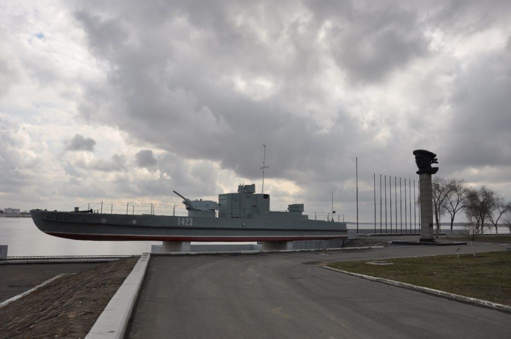 Бронекатер "БК-13", установленный в честь речников Волжской военной флотилии
