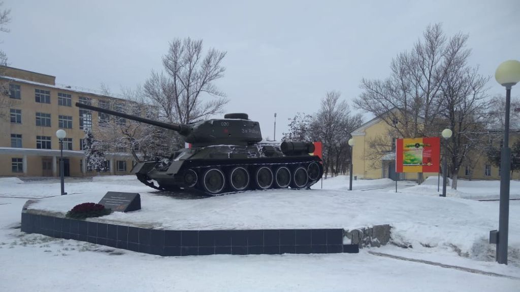 Танк "Т-34-85"- установленный в честь воинов 7 гвардейской отдельной танковой бригады, защищавшей Сталинград