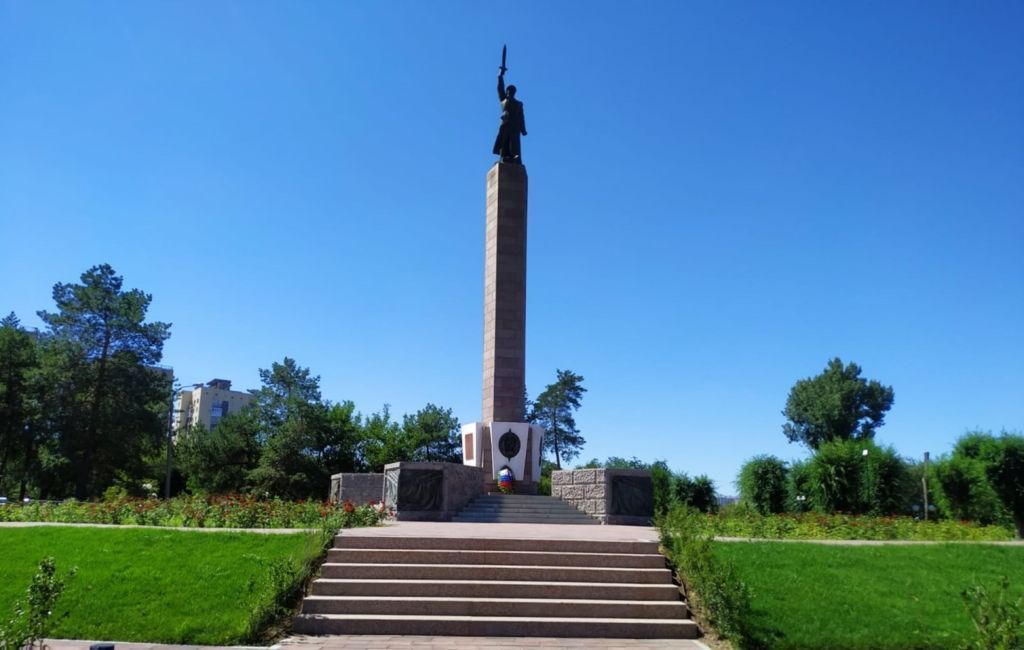Памятник сталинградским чекистам - бойцам 10 дивизии войск НКВД и работникам милиции г. Сталинграда, защищавшим центральную часть города у устья реки Царицы в 1942 - 1943 гг.