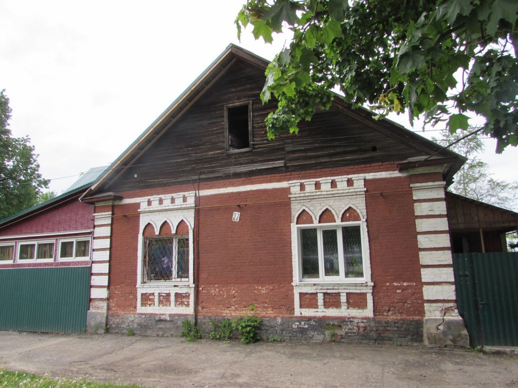 Стилистическая характеристика: тип «мальцовских» домов, имеет историческую и градостроительную ценность как объект, связанный с историей формирования градостроительной структуры города.Градостроительные характеристики:- местоположение: по линии застройки ул. Интернациональная.- силуэт: прямоугольный.- секторы и направления видовых раскрытий, визуальные связи памятника, главный фасад просматривается с ул. Интернациональная, дворовый и боковые фасады просматриваются с территории объекта.Архитектурные характеристики:- объёмно-пространственная композиция на дату строительства, или как результат поэтапного формирования памятника, с исключением (не включением) малоценных наслоений и искажений (пристроек, надстроек и т.п.): прямоугольный, одноэтажный объем, вытянутый вглубь участка, под двухскатной крышей с высоким дощатым треугольным фронтоном.- высотные характеристики: одноэтажное здание.- силуэт и форма крыши: двухскатная.- композиция и архитектурно-художественное оформление фасадов: по главному фасаду, выходящему на улицу, расположено два окна. Рустованные лопатки огибают углы здания. Оконные проёмы обрамлены наличниками: над проёмом помещены три стрельчатые арки, а над ними - прямой сандрик, завершённый пятью квадратными зубцами. Под окнами - три квадратные филенки, объединённые общей рамой. По боковым фасадам здания расположены окна и входы в помещения.- виды обработки фасадной плоскости: необработанный кирпич.- колористическое решение: декоративные элементы выделены белым цветом.- пространственно-планировочная структура интерьеров:внутри дом разделён на две половины капитальной перегородкой, за счет чего образуются две жилые квартиры.Конструктивные элементы:- капитальные стены, перегородки:глиняный кирпич.- крыша:стропила и обрешётка деревянные, кровля - металлическая с фальцами.- проёмы дверные и оконные: оконные проёмы квадратной формы с трёхчастной расстекловкой, заполнения - деревянные рамы с переплётами. Слуховое окно фронтона - прямоугольное. Дверные проёмы прямоугольной формы, заполнения - деревянные филенчатые двери.- Историческая функция: жилая.