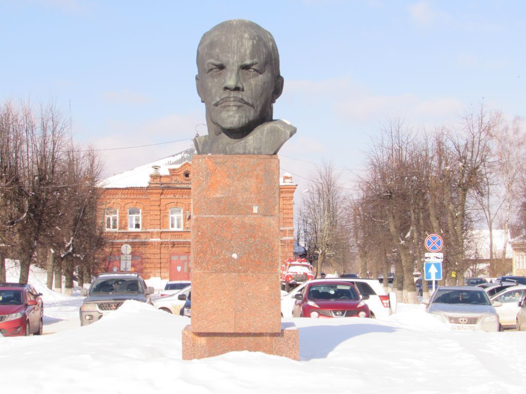 Градостроительные характеристики:- местоположение: расположен в центральной части города на ул. Серегина к востоку от объекта культурного наследия федерального значения «Ансамбль Благовещенского монастыря», XV-XVI вв., лицевой стороной выходит на юг на ул. Гагарина- секторы и направления основных видовых раскрытий, визуальные связи памятника: хорошо просматривается с прилегающих улиц. Архитектурные характеристики:- силуэт, объемно-пространственные характеристики: бюст В.И. Ленина на прямоугольном вертикально стоящем постаменте. Стилобат состоит из двух прямоугольных объемов разной высоты: более низкий выдвинут к лицевой стороне, более высокий – к задней. Высота бюста 110 см, размеры постамента: высота 150 см, в разрезе 90х90см.- материал: постамент облицован гранитными плитами вишневого цвета. Более высокая часть имеет шероховатую поверхность. Бюст В.И. Ленина выполнен из бронзы.