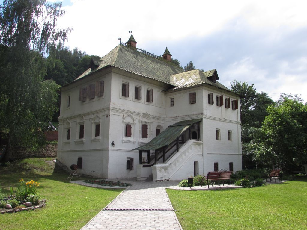 Предмет охраны «Дом Сапожникова»:Стилистическая характеристика: редкий образец древнерусского посадского зодчества XVII- XVIII вв. Градостроительные характеристики:-местоположение: у подножия Пужаловой горы, дом поставлен на перепаде рельефа в глубине участка, повернут торцом к улице Нагорная; -композиционная значимость (роль) в структуре окружающего ландшафта: высотная доминанта улицы Нагорная;-силуэт: прямоугольный;-секторы и направления видовых раскрытий, визуальные связи памятника: хорошо просматривается со всех четырех сторон света.Архитектурные характеристики:-объемно-пространственная композиция на дату строительства, или как результат поэтапного формирования памятника, с исключением (не включением) малоценных наслоений и искажений (пристроек, надстроек и т.п.): крупный прямоугольный в плане трехэтажный объем, вытянутый с востока на запад, завершенный высокой вальмовой кровлей с полицами, с небольшим выступом на южном фасаде и пониженным (относительно основного объема) трехэтажным ризалитом под двускатной кровлей с торцовой вальмой на северном фасаде, с пристроенной к восточному фасаду каменной лестницей; -высотные характеристики: трехэтажный объем;-силуэт и форма крыши: высокая вальмовая (на четыре ската) с полицами, на ризалите – трехскатная с полицами;конфигурация здания, наличие выступающих и западающих частей по фасадам: с южного фасада небольшой выступ, на северном фасаде выступает чуть пониженный относительно основного объема трехэтажный входной ризалит;-композиция и архитектурно-художественное оформление фасадов: подклетный этаж оформлен лопатками на углах и простым карнизом в завершении; второй этаж - многопрофильный карниз, раскрепованный на угловых огибающих лопатках, включает ряд поребрика между двумя валиками, крупные окна помещены в арочные ниши либо заключены в нарядные наличники с полуколонками, лентами бусин и килевидными кокошниками (два средних проема на северном фасаде, по сторонам крыльца, и два левых на восточной обращенной к улице стене). Крайнее левое окно на северном фасаде и правое на восточном обрамлены наличниками в нарышкинском стиле с разорванными фронтонами. Верхний этаж имеет угловые огибающие лопатки и карниз с поребриком, окна здесь украшены рамочными наличниками. Парапет лестницы оформлен ширинками;-виды обработки фасадной плоскости: обмазка по кирпичной кладке;-колористическое решение: белый цвет;-пространственно-планировочная структура интерьеров: первый подклетый этаж разделен глухой поперечной стеной пополам. Восточную половину занимает крупная квадратная палата, западная делится на два одинаково вытянутые по продольной оси помещения, соединенные между собой дверью. Каждая половина имеет свой вход; второй этаж имеет трехчастную планировку с сенями посередине и двумя помещениями по сторонам, причем западное поделено на две смежные комнаты. Сени соединены со вторым ярусом входного ризалита, куда ведет наружная лестница. Третий этаж - помещение над большой палатой разделено на две комнаты; северная из них значительно крупнее, при входе в нее в сенях выгорожена маленькая квадратная прихожая. Два одинаковых помещения в западной части связаны внутренней дверью. В южном выступе расположены отхожие места и внутристенная лестница, в северном ризалите рядом с 