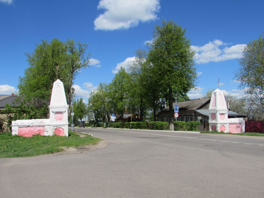 Стилистическая характеристика: интересный образец Суздальской общественной архитектуры XIX в.; Градостроительные характеристики:- местоположение: обелиски Юрьев-Польской (Ивановской, Ярославской) и Владимирской застав находятся, соответственно, в северной и южной частях города Суздаля, в конце и в начале улицы Ленина, располагаясь по обе стороны от дороги, обозначая границы города там, где ул. Ленина переходит в отрезок трассы Суздаль-Иваново и Суздаль-Владимир, т.е. на выезде из Суздаля и въезде в него; - композиционная значимость (роль) в структуре окружающего ландшафта: имеют значимую композиционную ценность: обозначают северную и южную границы города;- силуэт: в плане прямоугольник;- секторы и направления видовых раскрытий, визуальные связи памятника: памятник хорошо просматривается со всех четырех сторон света;Архитектурные характеристики:- объемно-пространственная композиция на дату строительства, или как результат поэтапного формирования памятника, с исключением (не включением) малоценных наслоений и искажений (пристроек, надстроек и т.п.): обелиски Юрьев-Польской, равно как и обелиски Владимирской застав, имеют одинаковую двухчастную композицию. Памятники представляют собой по два одинаковых кирпичных столба (в плане – квадрат), к которым под прямым углом примыкают небольшие фрагменты ограды (в плане – прямоугольник), имеющей двускатное завершение; - перепады высот и высотные акценты в архитектурном решении: имеется перепад высот столбов и ограды. Примыкающая ограда по высоте меньше половины столба;- силуэт и форма крыши: ограда имеет двускатное завершение; столбы имеют металлическое коническое завершение: шпиль с соколом на небольшом шаре (цвет покрытия под золото);- конфигурация здания, наличие выступающих и западающих частей по фасадам: силуэт памятника (в том виде, в котором он дошел до наших дней): буква «Г», лежащая перпендикулярно поверхности земли;- композиция и архитектурно-художественное оформление фасадов: столбы украшены профилированными ширинками усложненной формы. Декоративные элементы: плоские лопатки фрагментов стен; профилированные ширинки усложненной формы; конические завершения столбов со шпилем и соколом на небольшом шаре;- виды обработки фасадной плоскости: обмазка с сохранением рисунка кирпичной кладки, окраска;Конструктивные элементы: - капитальные стены: сложены из кирпича размером 250х70х120 на известковом растворе; - перекрытия: кирпичные;- крыша (материал, конструкция, связи): кровля кирпичная;- Историческая функция: заставы, построенные для осуществления карантинного надзора, ограничивавшие проезжую дорогу.