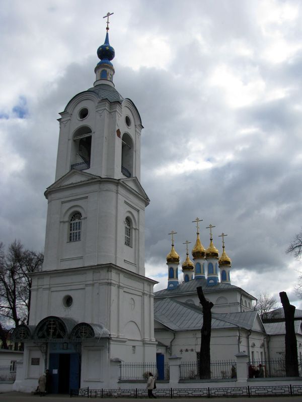 Стилистическая характеристика: памятник культовой архитектуры, выполненный в формах классицизма, характерных для конца XVIII - XIX вв. Градостроительные характеристики:- местоположение: памятник расположен в центральной части города;- композиционная значимость (роль) в структуре окружающего ландшафта: является важным элементом городской застройки;- габариты, силуэт: силуэт храма характеризуется сочетанием высокого основного объема, низкой трапезной, апсидной части и высокой трехъярусной колокольни;- секторы и направления видовых раскрытий, визуальные связи памятника: обзор на памятник открывается с северо-западной, юго-западной и западной сторон, наилучшим видовым ракурсом является вид на памятник с северо-западной стороны.Архитектурные характеристики:- объемно-пространственная композиция (с исключением пристроек, надстроек и т.п.): основной объем представляет собой высокий четверик под четырехскатной крышей, увенчанный пятью луковичными главами на глухих цилиндрических барабанах; по южному и северному фасадам основной объем усложнен пристроенными приделами с треугольными фронтонами; с востока к основному объему примыкает прямоугольная апсида с треугольным фронтоном в завершении; с запада к четверику примыкает двухстолпная трапезная, перекрытая скатной крышей; на северном и южном фасадах трапезной расположены треугольные фронтоны; к трапезной через переход примыкает квадратная в плане трехъярусная колокольня, завершенная крышей на восемь скатов и главой луковичной формы;- высотные характеристики: основной объем выше трапезной, приделов и алтарей, колокольня трехъярусная, является высотной доминантой объекта; - силуэт и форма крыши: крыша основного объема на четыре ската, основной объем венчают пять луковичных глав с крестами на глухих цилиндрических барабанах; крыша трапезной двухскатная с вальмой, крыши приделов и центрального алтаря двухскатные с кирпичными фронтонами, крыши придельных алтарей скатные, крыша колокольни криволинейная на восемь скатов с декоративными закомарами, увенчана луковичной главой с крестом; переход от колокольни к трапезной перекрыт на два ската;- конфигурация здания (наличие выступающих и западающих частей по фасадам): к прямоугольному в плане основному объему с севера и юга примыкают прямоугольные приделы с алтарями прямоугольной формы, с востока примыкает прямоугольный главный алтарь, с запада – прямоугольная в плане трапезная; трапезная шире четверика, но уже боковых приделов; к западному фасаду трапезной примыкает переход, соединяющий трапезную и квадратную в плане колокольню;- особенности планировочных связей помещений: планировочная композиция памятника вытянута по оси восток — запад, внутреннее пространство основного объема и алтаря соединяется тремя арочными проемами, центральный из которых незначительно шире боковых; основной объем и трапезная соединяются широким арочным проемом; основной объем и боковые приделы соединяются широкими арочными проемами, алтарь основного объема соединяется арочными проемами с алтарями северного и южного приделов, двухстолпная трапезная образует единое помещение прямоугольной формы; первый ярус колокольни выполнен в виде широкого арочного прохода, ведущего через переход в трапезную часть храма;- композиция и архитектур