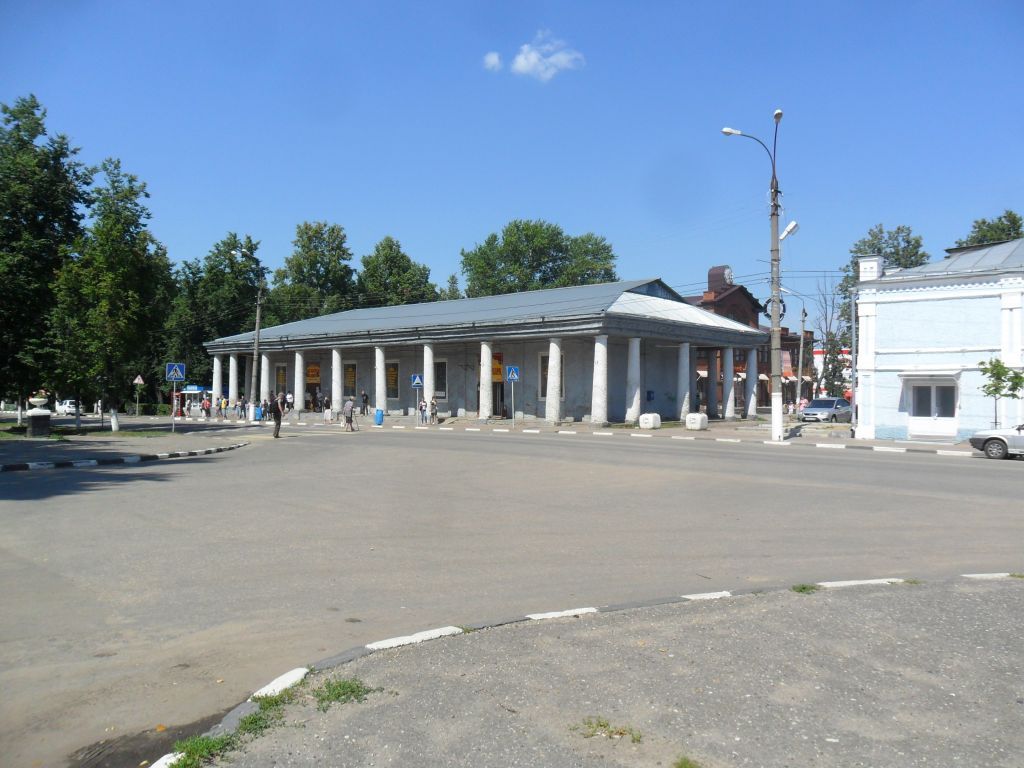 Предмет охраны памятника градостроительства и архитектурырегионального значения«Ансамбль торговых рядов. Восточный корпус», 1887 г.(Владимирская область, г. Вязники, ул. Советская, д. 37)Предмет охраны памятника градостроительства и архитектуры включает в себя следующие характеристики:Стилистическая характеристика: здание характерное для крупного торгового сооружения периода эклектики, в архитектуре сочетаются приемы классицизма и отдельные декоративные элементы русского стиля.Градостроительные характеристики:местоположение: на центральной площади, поставлен с небольшим разрывом от западного корпуса, по линии застройки северной стороны ул. Советской. габариты, силуэт: прямоугольный силуэт.секторы и направления видовых раскрытий, визуальные связи памятника: объект хорошо просматривается со всех четырех сторон света.Архитектурные характеристики:объемно-пространственная композиция на дату строительства, или как результат поэтапного формирования памятника, с исключением (не включением) малоценных наслоений и искажений (пристроек, надстроек и т.п.): двухэтажный прямоугольный объем, под вальмовой скатной крышей, вытянутый с востока на запад.высотные характеристики: здание двухэтажное.силуэт и форма крыши: вальмовая, скатная.композиция и архитектурно-художественное оформление фасадов: главный южный фасад расчленен на девять прясел поэтажными пилястрами: сдвоенными во втором этаже и одинарными, типа широких лопаток с филенками на всю высоту, - в первом. На пилястрах раскрепованы акцентированные побелкой горизонтали: цоколь, междуэтажный пояс и своеобразный антаблемент со слабо выявленным карнизом и широким, украшенным сухариками фризом. В более широком центральном прясле на втором этаже окна расположены в другом ритме: по три узких прямоугольных окна фланкируют сдвоенное среднее (над входом). На главном фасаде входы расположены строго симметрично - в центре и в крайних пряслах. Над краем кровли установлены квадратные тумбы, а по центру торцовых фасадов - фигурные аттики. виды обработки фасадной плоскости: окраска по штукатурке.колористическое решение: декоративные элементы выкрашены в белый цвет.пространственно-планировочная структура интерьеров: внутреннее пространство первого этажа разделено поперечными кирпичными стенами на пять квадратных торговых помещений, связанных между собой анфиладно. В четырех из них (кроме среднего) перекрытие опирается на квадратный столб в центре. На второй этаж ведут две лестницы, устроенные в пристройках со двора. Наверху стенами выделено лишь среднее помещение.тип планировочной организации: анфиладный.Конструктивные элементы:капитальные стены, перегородки: глиняный кирпич.крыша: стропила и обрешетка деревянные, кровли – кровельная сталь.проёмы дверные и оконные: оконные проемы с деревянными заполнениями и переплетами. Дверные проемы прямоугольной формы, заполнения – деревянные, филенчатые двери.Историческая функция: торговая.Предмет охраны памятника градостроительства и архитектурырегионального значения«Ансамбль торговых рядов. Западный корпус», 1839-1841 гг.(Владимирская область, г. Вязники, ул. Советская, д. 35)Предмет охраны памятника градостроительства и архитектуры включает в себя следующие характеристики:Стилистическая характеристика: пример общественног