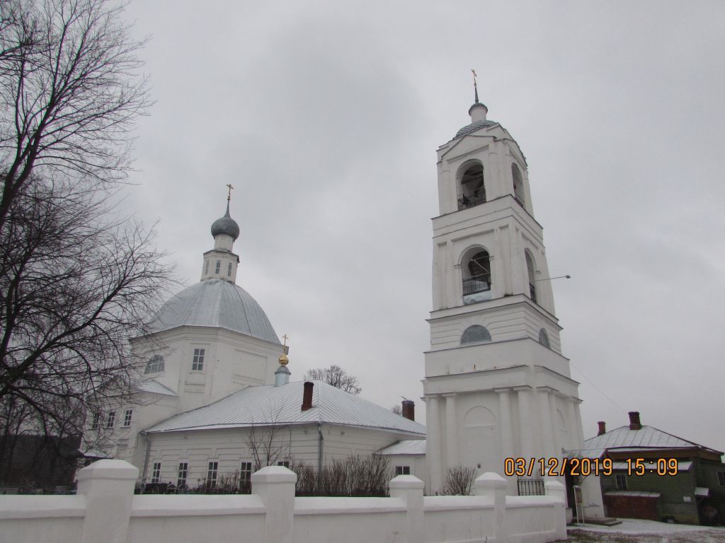 Предмет охраны памятника градостроительства и архитектуры включает в себя следующие характеристики:Стилистическая характеристика: представляет собой пример культовой постройки нач. XIX в., выполненной в стиле классицизма.Градостроительные характеристики: - местоположение: на краю села, недалеко от р. Колокша, на старом погосте;- секторы и направления видовых раскрытий, визуальные связи памятника: объект хорошо просматривается со всех четырех сторон света;Архитектурные характеристики:- объемно-пространственная композиция: выделен высокий трехсветный восьмерик основного объема крытый железом на восемь скатов и увенчанный луковичной главой на двойном восьмигранном барабане; основной объем уравновешивает высокая трехъярусная колокольня под восьмискатной крышей, которую завершает высокий шпиль на цилиндрическом барабане;- силуэт и форма крыши: основной объем – восьмискатная, трапезная – двускатная вальмовая, колокольня – восьмискатная;- композиция и архитектурно-художественное оформление фасадов: декоративное оформление выполнено в стиле классицизма; основной объем с юга и севера оформляют треугольные фронтоны, над которыми выполнено большое полуциркульное окно; трапезную и апсиду украшает «руст»; первый и второй ярус колокольни по бокам украшают двойные круглые колонны; основание второго яруса оформлено «рустом», полуциркульными окнами; верхний ярус колокольни украшают треугольные фронтоны, опирающиеся на круглые полуколонны;- пространственно-планировочная структура интерьеров: основной объем соединен с апсидой и трапезной широкими арочными проемами;Конструктивные элементы:- фундамент: булыжный.- капитальные стены: выполнены из кирпича на известковом растворе (размеры кирпича 275-280х120-130х75-80);- перекрытия: основной объем – сомкнутый восьмилотковый свод; апсида – коробовый свод с лотком с востока; трапезная – коробовые своды с распалубками, который опирается на два прямоугольных в плане столба;- крыша: стропила и обрешетка деревянные; кровельное покрытие - кровельная сталь;- проемы дверные и оконные: оконные проемы прямоугольной и полуциркульной формы; на барабане, завершающем основной объем, оконные проемы арочной формы; дверные проемы прямоугольной формы, заполнения – деревянные филенчатые двери.