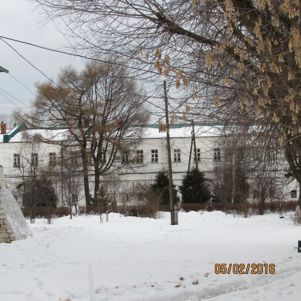 охраны памятника включает в себя следующие характеристики:Стилистическая характеристика: древнерусское жилое здание с традиционной планировочной структурой в первоначальной части и характерной для XVII в. отделкой фасадов;Градостроительные характеристики:- местоположение: памятник расположен в северо-восточной части монастырской территории, на границе монастырского и хозяйственного дворов, на небольшом расстоянии от восточной и северной стен монастырской ограды, образуя между стеной и корпусом хозяйственный двор;- композиционная значимость (роль) в структуре окружающего ландшафта: является важным элементом ансамбля Успенского монастыря; в общей архитектурно-планировочной композиции келейный корпус завершает кольцевую структуру ансамбля с северной и восточной сторон;- габариты, силуэт: два прямоугольника, объединенных в плане в букву «Г»;Архитектурные характеристики:- объемно-пространственная композиция (с исключением пристроек, надстроек и т.д.): протяженная, состоит из двух корпусов, объединенных в плане в букву «Г», с входами на южном и западном фасадах; южное крыло почти в четыре раза короче западного. Главными фасадами оба корпуса обращены в сторону монастырского двора;- высотные характеристики, перепады высот: здание двухэтажное;- силуэт и форма крыши: кровля двускатная;- композиция и архитектурно-художественное оформление фасадов: выполнено в формах каменного жилого зодчества Руси: фасады равномерно членятся лопатками на прясла, отражающие секционную планировку первого этажа, по три окна в каждом прясле соответственно; профилированные карнизы в завершении стен и междуэтажные, профилированное обрамление арочных оконных проемов первого этажа с килевидными и арочными фронтонами в завершении; Прямоугольные рамки окон переходят в килевидный верх с контуром шлема, упирающийся острием в валик под междуэтажным карнизом. Более пластичны и сложнее по рисунку завершения над входами, перебивающие этот валик. Во втором этаже южную и западную стены членят лопатки, помещенные над нижними. Под прямоугольными окнами без наличников проходит пояс-полка;- виды обработки фасадной плоскости: побелка по затирке;- планировочная структура внутренних помещений: планировочное решение этажей различно. Первый этаж составлен из самостоятельных одинаковых трехчастных секций с сенями, одни из которых выходят на внутреннюю территорию ансамбля (южный фасад), другие – на хозяйственный двор (северный фасад). Среднему пряслу секций в первом этаже соответствуют сени, а боковым – связанные с ними кельи. Продольная капитальная стена делит секцию на «чистую» и «черную» половины. В черную попадают засенья и кухни, обращенные окнами к монастырской стене. Секции первого этажа относятся к типу «изба с клетью».Второй этаж: коридорная, симметричная схема: помещения (равные объемы с тремя окнами по фасаду), выходящие окнами к центру монастыря, объединяет сквозной коридор вдоль западной стены;- архитектурно-художественное оформление интерьеров на определенный временной период: каменные потолочные розетки XVI в. в вершинах сводов первого этажа;Конструктивные элементы:- фундаменты: булыжные, ленточные;- капитальные стены, перегородки: глиняный кирпич на известковом растворе;- перекрытия: сводчатые, плоские. В первом этаже над помещениями пе