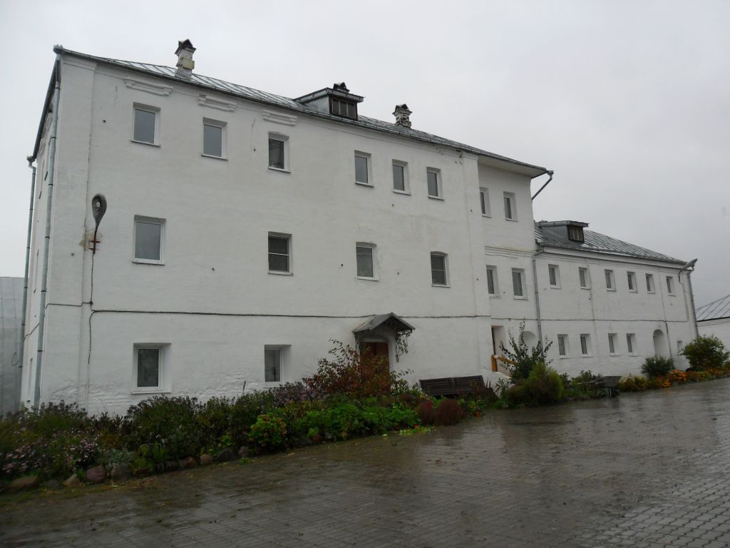 Предмет охраны памятника включает в себя следующие характеристики:Стилистическая характеристика: монастырская жилая постройка с чертами архитектуры XVIII в., скромно декорированная на фасадах. Градостроительные характеристики: - местоположение: здание расположено в линии западной стороны ограды; на расстоянии семи-восьми метров севернее его – небольшая сторожка; с восточной стороны – Никольская и Сергиевская церкви;- секторы и направления видовых раскрытий, визуальные связи памятника: объект хорошо просматривается со всех четырех сторон света;Архитектурные характеристики:- объемно-пространственная композиция: южная половина здания трехэтажная, северная - двухэтажная;- силуэт и форма крыши: двускатная;- композиция и архитектурно-художественное оформление фасадов: плоские пилястры; сандрики над окнами третьего этажа; профилированный карниз в завершении стен;- виды обработки фасадной плоскости: побелка по штукатурке;Конструктивные элементы:- фундамент: булыжный ленточный на известковом растворе;- капитальные стены: глиняный кирпич, размер кирпича 275х140х75;- перекрытия: своды первого этажа – коробовые с торцовыми лотками и распалубками над окнами и дверями; в верхних этажах – плоские, дощатые по деревянным балкам;- крыша: стропила и обрешетка – деревянные; кровельное покрытие – кровельная сталь;- проемы дверные и оконные: оконные проемы прямоугольной формы с широкими откосами, заполнения – деревянные рамы с переплетами, дверные проемы с трехцентровой перемычкой, заполнения – деревянные филенчатые двери.