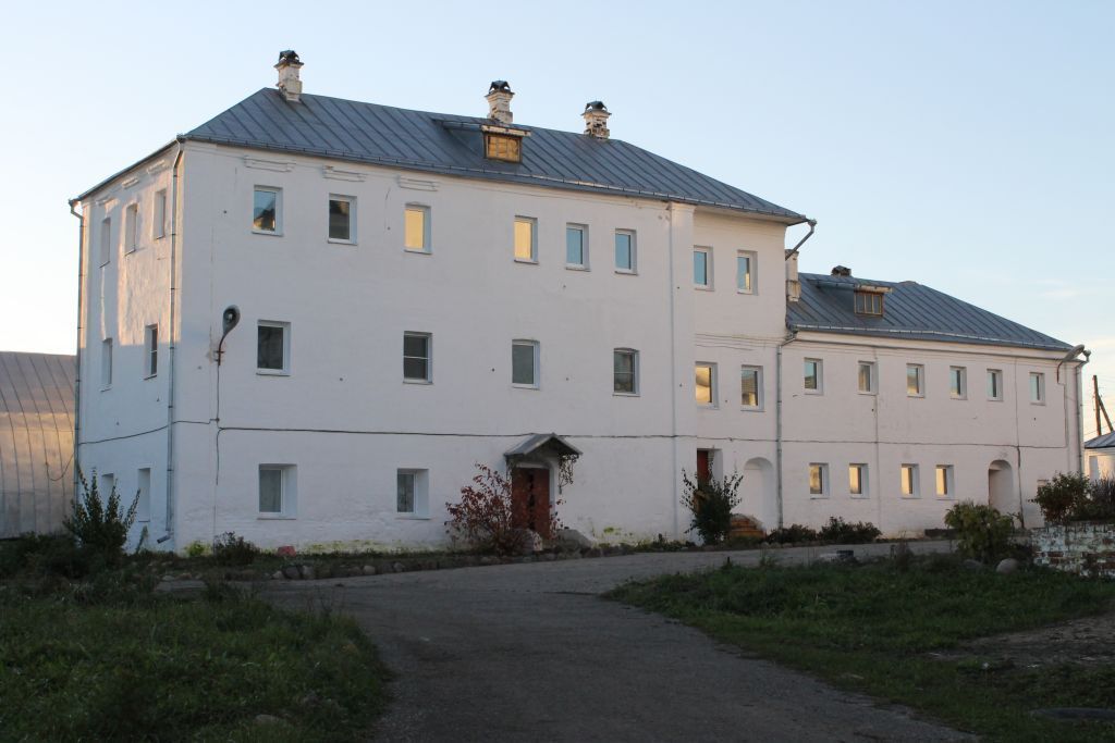 Предмет охраны памятника включает в себя следующие характеристики:Стилистическая характеристика: монастырская жилая постройка с чертами архитектуры XVIII в., скромно декорированная на фасадах. Градостроительные характеристики: - местоположение: здание расположено в линии западной стороны ограды; на расстоянии семи-восьми метров севернее его – небольшая сторожка; с восточной стороны – Никольская и Сергиевская церкви;- секторы и направления видовых раскрытий, визуальные связи памятника: объект хорошо просматривается со всех четырех сторон света;Архитектурные характеристики:- объемно-пространственная композиция: южная половина здания трехэтажная, северная - двухэтажная;- силуэт и форма крыши: двускатная;- композиция и архитектурно-художественное оформление фасадов: плоские пилястры; сандрики над окнами третьего этажа; профилированный карниз в завершении стен;- виды обработки фасадной плоскости: побелка по штукатурке;Конструктивные элементы:- фундамент: булыжный ленточный на известковом растворе;- капитальные стены: глиняный кирпич, размер кирпича 275х140х75;- перекрытия: своды первого этажа – коробовые с торцовыми лотками и распалубками над окнами и дверями; в верхних этажах – плоские, дощатые по деревянным балкам;- крыша: стропила и обрешетка – деревянные; кровельное покрытие – кровельная сталь;- проемы дверные и оконные: оконные проемы прямоугольной формы с широкими откосами, заполнения – деревянные рамы с переплетами, дверные проемы с трехцентровой перемычкой, заполнения – деревянные филенчатые двери.