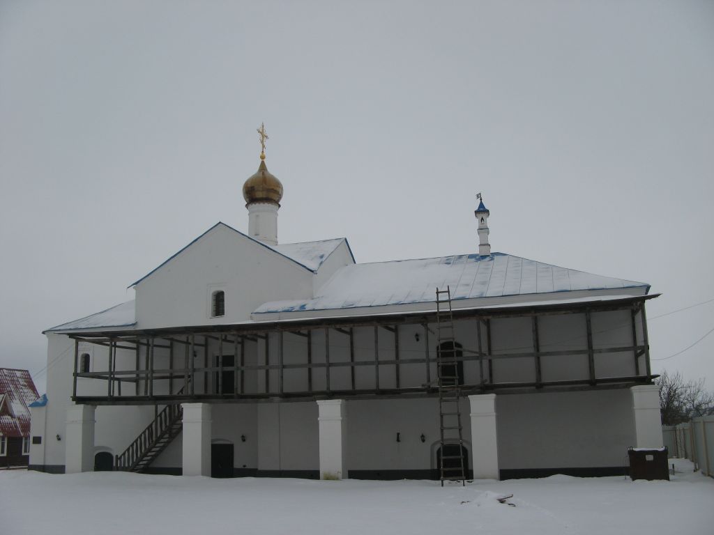 Предмет охраны памятника градостроительства и архитектуры включает в себя следующие характеристики:Стилистическая характеристика: представляет прекрасный и редкий образец древнерусской второй половины XVII в.Градостроительные характеристики: - местоположение: здание расположено в южной части Васильевского монастыря, в 20-25 м к югу от Васильевского собора, главный северный фасад выходит на монастырскую площадь;- композиционная значимость (роль) в структуре окружающего ландшафта (высотная доминанта, композиционная ядро и т.п.): является зданием, организующим внутреннее пространство центральной части монастырского ансамбля;- габариты, силуэт габаритные размеры здания в плане 28,8х12,4м, южная пристройка — 3,5х3,4м(4,6м) (пристройка начала XXI). Силуэт здания характеризуется монументальной формой основных объемов, перекрытых крышей трехскатной формы, и основного объема – восьмискатной крышей;- секторы и направления видовых раскрытий, визуальные связи памятника: обзор памятника открывается с северной и с северо-восточной сторон, наилучшим видовым ракурсом является северный вид на здание со стороны Васильевского собора.Архитектурные характеристики:- объемно-пространственная композиция (с исключением пристроек, надстроек и т.д.): квадратный двухэтажный объем, перекрытый восьмискатной кровлей и завершающийся небольшой главкой с крестом, с восточного и западного фасадов к нему примыкают два прямоугольных двухэтажных объема, немного ниже основного объема здания церкви, и покрытых высокой трехскатной кровлей. С северной стороны к трапезной и частично к основному объему церкви примыкает открытая двухэтажная галерея, под односкатной кровлей;- перепады высот и высотные акценты в архитектурном решении: основной объем возвышается над объемами алтаря и трапезной и является композиционным центром здания;- силуэт и форма крыши: крыша основного объема восьмискатная с четырьмя щипцами, крыши алтаря и трапезной – трехскатные с широкой полицей, односкатная крыша галереи примыкает к карнизу трапезной, объем поздней пристройки перекрыт односкатной кровлей;- конфигурация здания (наличие выступающих и западающих частей по фасадам): основной объем и алтарь – прямоугольные в плане. С запада к основному объему примыкает прямоугольный объем трапезной, выступающей за пределы стен основного объема. Вдоль северного фасада трапезной и основного объема располагается двухэтажная галерея на каменных столбах;- композиция и архитектурно-художественное оформление фасадов (в т.ч. металлические зонты и козырьки над входами): плоскости фасадов оформлены слабовыступающими угловыми и рядовыми лопатками. Угловые лопатки алтарной части идут на высоту 1 этажа. В уровне второго этажа криволинейные в плане апсиды алтаря разделены узкими пилястрами. Алтарь и трапезная завершаются невысоким карнизом с простыми обломами. Основной объем завершается четырьмя щипцами с карнизами из трех рядов кирпича, слабо выступающими от плоскости фасада. Окна апсиды 2 этажа оформлены наличниками в форме сандриков. Оконные проемы трапезной заглублены в арочные ниши.Входы в трапезную и помещение первого этажа основного объема располагаются под галереей. В помещения 2 этажа вход осуществляется с открытой галереи.Деревянная галерея на каменных столбах располагается вдоль
