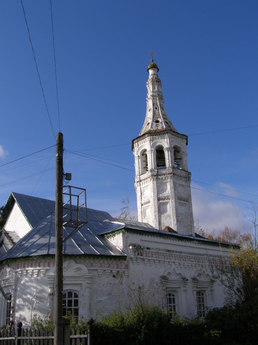 Предмет охраны объекта культурного наследия включает в себя следующие характеристики:Стилистическая характеристика: русская архитектура XVIII в.; Градостроительные характеристики:- местоположение: церковь расположена в центральной части города Суздаля; вместе с рядом расположенной Цареконстантиновской церковью составляет единый архитектурный ансамбль;- композиционная значимость (роль) в структуре окружающего ландшафта: является архитектурным акцентом окружающей застройки;- габариты, силуэт: силуэт храма характеризуется сочетанием высокой колокольни и низкого протяженного объема четверика, трапезной, придела и апсиды;- секторы и направления видовых раскрытий, визуальные связи памятника: обзор на памятник открывается с южной, восточной, юго-восточной, северо-восточной, северной, западной сторон; наилучшими видовыми ракурсами являются виды на памятник с южной, юго-восточной, северной сторон;Архитектурные характеристики:- объемно-пространственная композиция (с исключением пристроек, надстроек и т.п.): объемно-пространственная композиция храма построена на акцентировании высокой шатровой колокольни, которой подчинены низкие объемы четверика, трапезной, притвора, придела и алтарей. Тип объемно-пространственной композиции колокольни – «восьмерик на четверике», храм относится к типу церквей клетского типа;- высотные характеристики: основной объем односветный, незначительно выше трапезной, придела и алтарей;- силуэт и форма крыши: основной объем завершается двухскатной крышей с восточным торцевым фронтоном; трапезная часть и притвор перекрыты общей двухскатной крышей с полувальмами, примыкающими к северному и южному фасадам колокольни; придел имеет трехскатную крышу; алтари перекрыты двухскатными крышами, переходящими в конусообразные крыши на полукруглых частях апсид; шатер колокольни восьмигранный, увенчан небольшой главой с крестом на подкрестном шаре;- конфигурация здания (наличие выступающих и западающих частей по фасадам): к основному объему с запада примыкает трапезная и притвор одной ширины с основным объемом, с востока примыкает полукруглая апсида, меньшей ширины, чем основной объем, с севера примыкает прямоугольный в плане придел с полукруглой апсидой;- особенности планировочных связей помещений: планировочная структура памятника трехчастная: планировочная композиция памятника вытянута по оси запад - восток, внутренние пространства основного объема, трапезной и алтаря соединяются широкими арками, образуя единое внутреннее пространство; основной объем храма соединен с приделом арочным проемом; придел и алтарь придела соединены широкой аркой, образуя общее пространство придела; планировочная структура церкви принадлежит к традиционной схеме с осевым расположением помещений вдоль центральной продольной оси и наличием бокового придела;- композиция и архитектурно-художественное оформление фасадов: Четверик, трапезная, притвор, придел и алтари украшены карнизом, состоящим из ряда городков, над которым расположен пояс из декоративных цветных балясин и напусков кирпича. Карниз раскрепован на пилястрах. Углы основного объема и притвора закреплены пилястрами, рядовые пилястры расположены на фасадах трапезной и апсид. Цокольная часть храма отделена от основной плоскости стены пояском, состоя