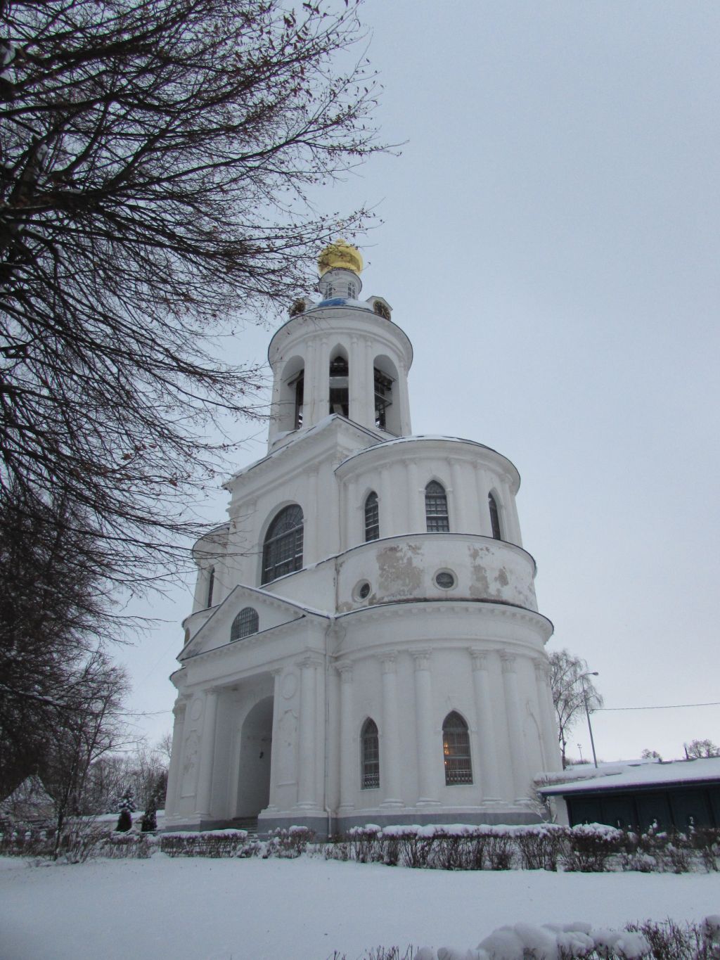 Предмет охраны памятника градостроительства и архитектуры включает в себя следующие характеристики:Стилистическая характеристика: представляет собой типичный пример надвратных церквей периода позднего классицизма;Градостроительные характеристики:- местоположение: ансамбль Боголюбовского монастыря расположен на возвышенной местности, пересекаемой оврагом и прудами. Надвратная церковь находится на территории объекта археологического наследия федерального значения Городище “Боголюбовское”, IX-X, XII-XIII, XIV-XVII вв., а также в зоне видимости историко-ландшафтного комплекса «Боголюбовский луг», в зоне регулирования застройки «Церкви Покрова-на-Нерли», 1165 г. Колокольня с Надвратной церковью над древними Святыми воротами располагается на северном участке монастырской ограды;- композиционная значимость (роль) в структуре окружающего ландшафта: является композиционным ядром и высотной доминантой ансамбля Боголюбовского монастыря вместе с Успенским собором;- габариты, силуэт: колокольня в плане – квадрат, состоит из двух четвериков одинакового размера и одного цилиндра (верхний ярус звона), с большим лестничным пролетом. Три нижних четвериковых яруса колокольни дополнены с двух сторон (с востока и запада) округлыми помещениями, в плане – полуциркульными;- секторы и направления видовых раскрытий, визуальные связи памятника: памятник просматривается как со стороны федеральной трассы (поселка Боголюбово), так и с территории монастыря;Архитектурные характеристики:- объемно-пространственная композиция (с исключением пристроек, надстроек и т.д.): постройка ориентирована по оси: запад-восток, состоит из центрального четырехъярусного объема, завершенного сферической кровлей со слухами и фигурной главой на световом цилиндрическом барабане, и примыкающих к нему с запада и востока трехъярусных полуциркульных в плане боковых объемов, в левом из которых находится лестница. В нижнем ярусе устроен торжественный арочный проход. Проход под аркой приподнят на четырнадцать ступеней и огражден воротами кованого железа;- высотные характеристики: высокая четырехъярусная колокольня (около 58 м), завершенная луковичной главой на цилиндрическом барабане и крестом. Боковые объемы – три яруса;- перепады высот и высотные акценты в архитектурном решении: средний этаж надвратной церкви сильно занижен, в высоту умещен треугольник фронтона.- силуэт и форма крыши: сферические, скатные;- конфигурация здания, наличие выступающих и западающих частей по фасадам: колокольня, в плане квадратная, с юга и севера оформленная колончатыми портиками с треугольными фронтонами, с востока и запада – полукружиями апсид;- композиция и архитектурно-художественное оформление фасадов: фасады здания декорированы полукруглыми колоннами композитного ордера, которые членят первый и третий этажи церкви и верхний ярус колокольни. С севера и юга главный арочный вход оформлен портиками с треугольными фронтонами, карнизы раскрепованы, под ними проходит сухарчатый подзор. В центре третьего яруса четверика – широкое арочное окно, а полукружия апсид ритмично прорезаны оконными проемами стрельчатой формы. Проемы окон оставлены без оформлений, украшены декоративными замковыми камнями. В завершении стен проходит карниз с рядом сухариков. На фасадах сохраняются следы 
