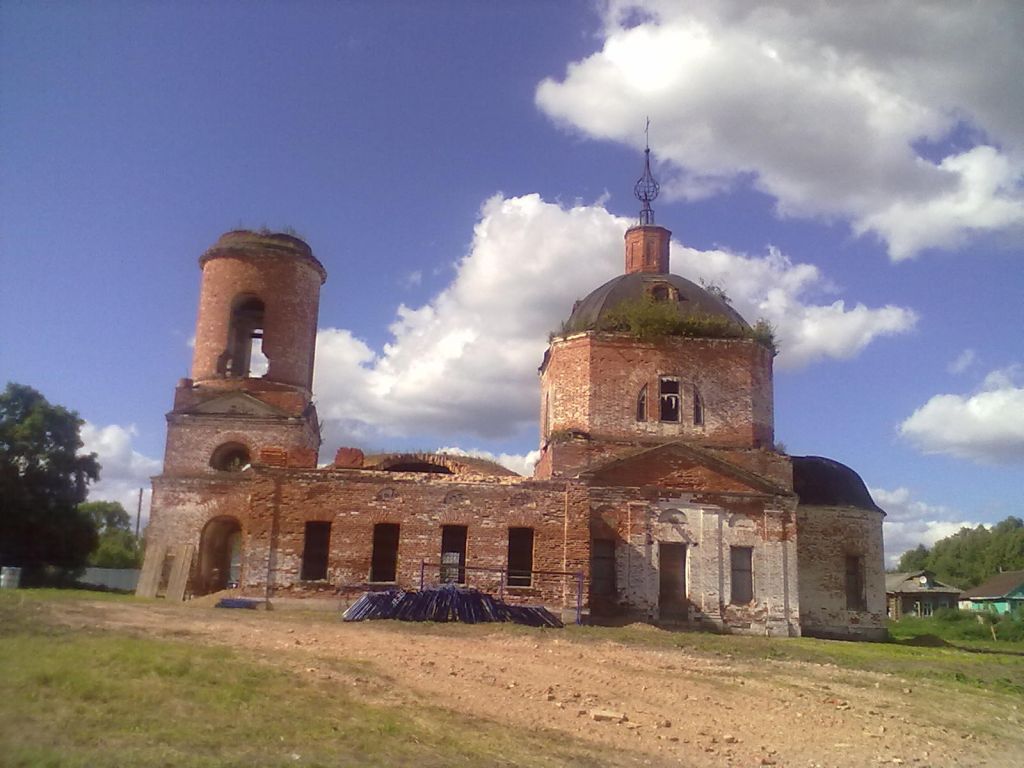 Предмет охраны памятника градостроительства и архитектуры включает в себя следующие характеристики:Стилистическая характеристика: характерный для эпохи классицизма памятник культовой архитектуры, в котором еще видны черты барокко;Градостроительные характеристики:- местоположение: объект расположен на краю села, у пруда; - силуэт: относится к одноглавым, бесстолпным, трехчастным храмам;- секторы и направления видовых раскрытий, визуальные связи памятника: постройка хорошо просматривается со всех четырех сторон света;Архитектурные характеристики:- объемно-пространственная композиция: центр композиции – основной объем в форме «восьмерик на четверике», с востока примыкает полукруглая апсида, с запада – прямоугольная короткая трапезная, вытянутая в поперечном направлении; к трапезной вплотную приставлена ярусная колокольня, два четверика, уменьшающиеся в плане, несут цилиндрический ярус звона;- силуэт и форма крыши: основной объем – кровля, сомкнутая по своду, граненая; апсида – полукупольная; трапезная – двускатная с вальмами;- композиция и архитектурно-художественное оформление фасадов: полуциркульные ниши над прямоугольными окнами; в четверике – один ряд окон и треугольные пилястровые портики по сторонам; в восьмерике – четыре трехчастных окна в четырех гранях, а диагональные грани узкие; в четырех скатах кровли – полукруглые люкарны;- виды обработки фасадной плоскости: побелка по кирпичной кладке;Конструктивные элементы:- фундамент: бутовый, ленточный;- капитальные стены, перегородки: кирпич (размеры кирпича 280х125х130);- перекрытия: основной объем – свод глухой, сомкнутый, восьмилотковый, при переходе к восьмерику – вспарушенные тромпы; апсида – свод конхой; в трапезной – вспарушенные своды между двух подпружных арок, перекинутых на околостенные столбы;- крыша: стропила и обрешетка деревянные, кровля – кровельная сталь;- проёмы дверные и оконные: оконные проемы трапезной, четверика основного объема – прямоугольной формы, оконные проемы восьмерика – трехчастные; заполнения – деревянные рамы с переплетами; пролеты колокольни – арочной формы; дверные проемы в колокольне арочной формы, в основном объеме – прямоугольной формы, заполнения – деревянные филенчатые двери.