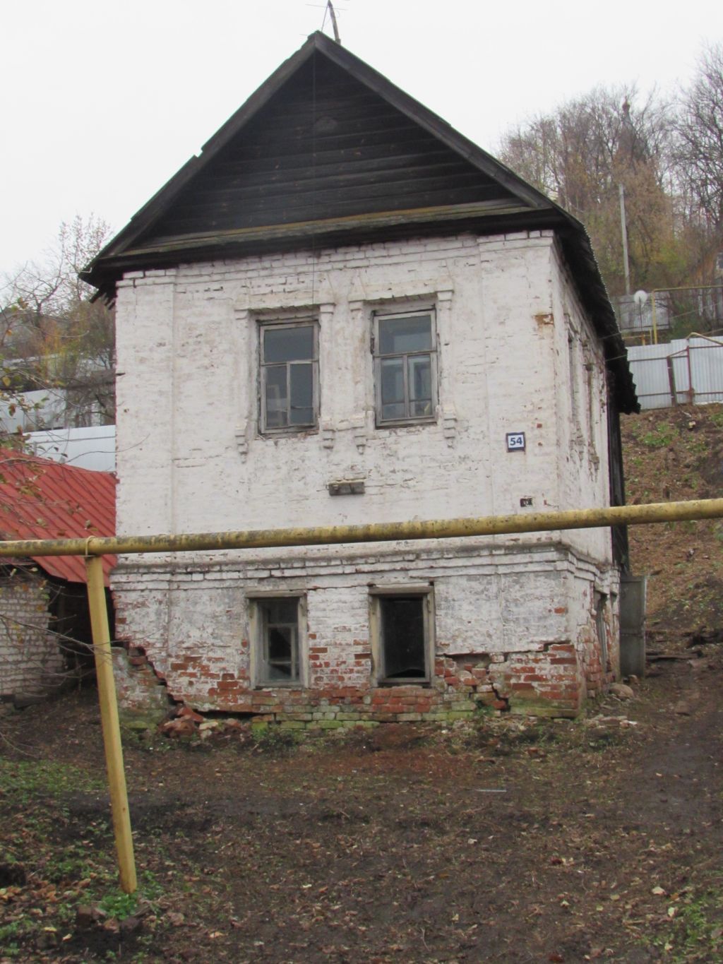 Стилистические характеристики: редкий тип каменной гражданской постройки рубежа XVII-XVIII вв., образец однопалатного посадского жилого дома.Градостроительные характеристики:- местоположение: в западной части города у подножия Пужаловой горы, на ул. Набережная;- композиционная значимость (роль) в структуре окружающей застройки: с одновременным и схожим по композиции и декору домом Румянцева (ул. Набережная, д. 53), образует небольшой комплекс, дающий представление о каменном строительстве купцов среднего достатка и о композиции древнерусской улицы; - габариты, силуэт: прямоугольный; - секторы и направления основных видовых раскрытий: памятник хорошо просматривается с севера, запада и юга, с востока визуальное восприятие ограничено.Архитектурные характеристики:- объемно-пространственная композиция: двухэтажный, прямоугольный объем под двухскатной крышей; - высотные характеристики: двухэтажное здание;- силуэт и форма крыши: двухскатная;- композиция и архитектурно-художественное оформление фасадов: углы основного объема отмечены огибающими лопатками, на которых раскрепованы два ступенчатых карниза - междуэтажный и венчающий. На северном и западном фасадах расположены по два оконных проема в двух ярусах. Окна северного фасада расположены друг под другом и сдвинуты относительно оси фасада к западу, на западном фасаде окна нижнего и верхнего ярусов смещены относительно друг друга и сдвинуты к северу. Окна низкого (первого этажа) не имеют обрамлений. Наличники проемов второго этажа украшены колонками, опирающимися на ступенчатые кронштейны, увенчаны пирамидками и завершены прямыми сандриками. На втором этаже восточного фасада расположено восьмигранное окно с валиковым рамочным наличником имеющее металлическую кованную узорчатую решетку; - виды обработки фасадной плоскости: окраска по кирпичной кладке; - колористическое решение: белый цвет;- тип планировочной организации и планировочная структура внутренних помещений: по типу древнерусской избы четырехстенки.Конструктивные элементы:- фундаменты: ленточного типа без уширения. Цокольная часть выполнена из большеразмерного кирпича на известковом растворе. Нижняя часть фундамента выложена двумя рядами кладки из бутовых камней, пролитых известковым раствором; - капитальные стены: из большемерного глиняного кирпича на известковом растворе; - перекрытия: первый этаж - коробовый свод с распалубками прямоугольной формы на западном фасаде, второй этаж – деревянный;- крыша: стропила и обрешетка деревянные;- проёмы дверные и оконные: оконные проемы прямоугольной формы, заполнения – деревянные рамы; дверные проемы прямоугольной формы, заполнения – деревянные двери;- лестница: деревянная.