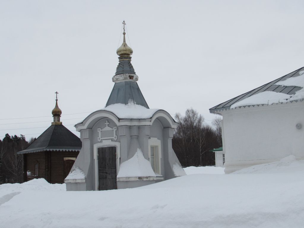Предмет охраны памятника включает в себя следующие характеристики:Стилистическая характеристика: пример монастырской постройки выполненной в стиле эклектики.Градостроительные характеристики:местоположение: в нескольких метрах от северо-восточного угла монастырского ансамбля;композиционная значимость (роль) в структуре окружающего ландшафта: неотъемлемая часть монастырского ансамбля;силуэт: квадратное в плане здание;секторы и направления видовых раскрытий, визуальные связи памятника: объект хорошо просматривается со всех четырех сторон света.Архитектурные характеристики:объемно-пространственная композиция на дату строительства, или как результат поэтапного формирования памятника, с исключением (не включением) малоценных наслоений и искажений (пристроек, надстроек и т.п.): квадратный в плане объем на углах усилен контрфорсами, которые кверху сужаются и раскрепованы в виде пилястр, завершенный шатровой крышей;высотные характеристики: одноэтажная постройка;форма крыши и завершения: невысокий восьмигранный шатер с широкими полицами в основании и профилированным выступом под главой лучковой формы, увенчанной крестом;композиция и архитектурно-художественное оформление фасадов: в завершении плоскости фасадов между контрфорсами перекинуты пологие арки. Вход устроен с северной стороны, окна – с западной и восточной, с юга - ложное окно. Наличники рамочные, с ушами и подоконными полочками. Над входом устроен прямоугольный лежачий киот, обрамленный плоским рамочным наличником с утолщением на углах и треугольным возвышением и крестом в верхней части;виды обработки фасадной плоскости: окраска по штукатурке.Конструктивные элементы:капитальные стены, перегородки: кирпич (250*120*65 мм) с использованием белого камня; крыша: стропила и обрешетка деревянные, кровли – кровельная сталь;проёмы дверные и оконные: дверной проем - высокий лучковый проем с деревянными двупольными дверями, оконные проемы лучковой формы, заполнения – деревянные рамы с переплетами.Историческая функция: киворий.
