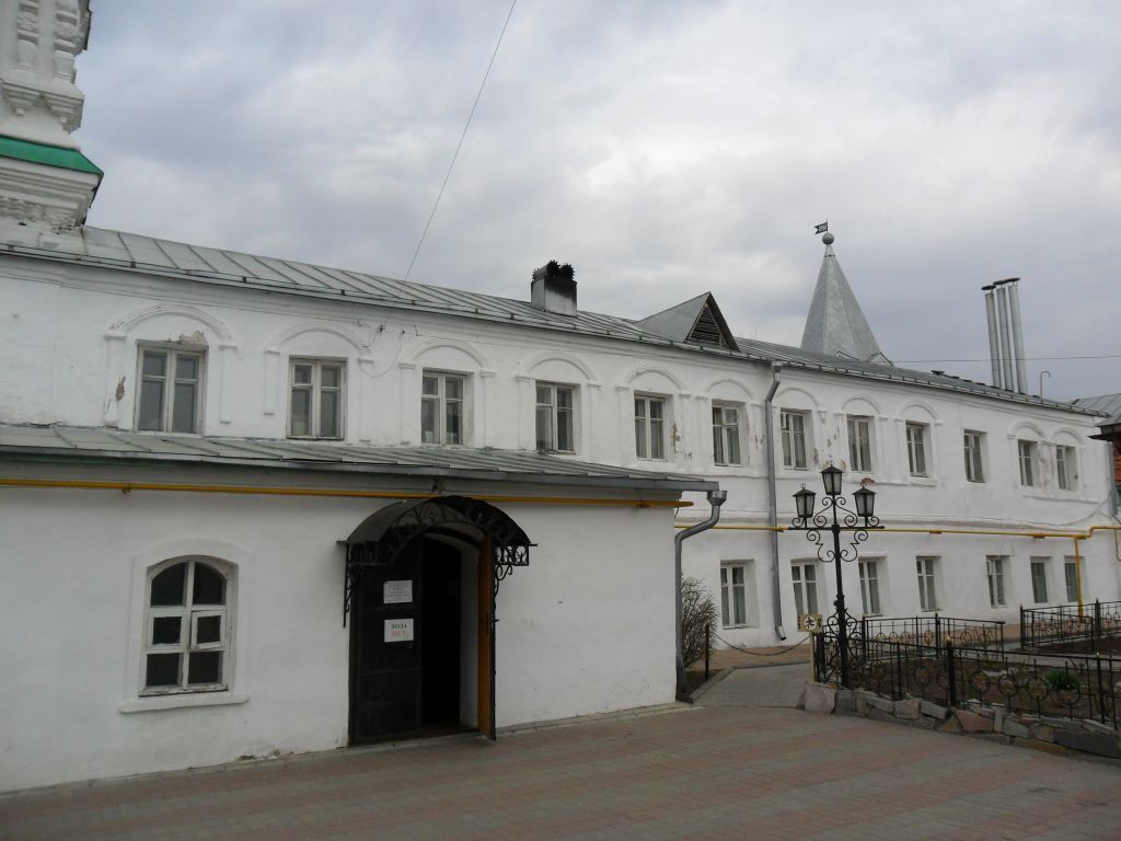 Предмет охраны памятника включает в себя следующие характеристики:Стилистическая характеристика: объект представляет собой элемент монастырского ансамбля, олицетворяет скромную монастырскую жилую постройку, несущую на себе следы перестроек, придавших декоративному решению фасадов разностилевой характер.Градостроительные характеристики:-местоположение: дом поставлен заподлицо с южной стеной монастыря слева от колокольни, между колокольней и угловой юго-западной башней; -композиционная значимость (роль) в структуре окружающего ландшафта: формирует юго-западную часть ансамбля Троицкого монастыря;-силуэт: прямоугольный, вытянутый с востока на запад;-секторы и направления видовых раскрытий, визуальные связи памятника: южный фасад просматривается с пл. Крестьянина, северный и западный фасады просматриваются с территории памятника. Архитектурные характеристики:-объемно-пространственная композиция на дату строительства, или как результат поэтапного формирования памятника, с исключением (не включением) малоценных наслоений и искажений (пристроек, надстроек и т.п.): двухэтажный прямоугольный объем, вытянутый с востока на запад, под вальмовой скатной крышей;-высотные характеристики: двухэтажное здание;-перепады высот и высотные акценты в архитектурном решении: первый этаж ниже второго;-силуэт и форма крыши: вальмовая, на два ската;-композиция и архитектурно-художественное оформление фасадов: на южном фасаде окна первого этажа не имеют наличников, окна второго этажа обрамлены наличниками в виде ленты из кирпича с профилированными арками поверху. На северном фасаде окна первого этажа с простым ленточным обрамлением, окна второго этажа с капителями по сторонам и арками вверху. Карниз и междуэтажный пояс простого профиля;-виды обработки фасадной плоскости: окраска по кирпичной кладке;-колористическое решение: белый цвет;-тип планировочной организации: коридорный.Конструктивные элементы:-капитальные стены: кирпичные (размер кирпича 320*100*150 мм);-крыша: стропила и обрешетка деревянные, кровля – сталь с фальцами;-проёмы дверные и оконные: оконные проемы прямоугольной формы, причем на первом этаже меньше по размеру, чем на втором. На южном фасаде в юго-восточной части второго этажа два спаренных, арочных окна. Заполнения – деревянные рамы и металлические решетки «ромбовидного» рисунка в окнах второго этажа южного фасада и «квадратного» рисунка на первом этаже. Двери и окна раскошены внутрь помещения. Дверные проемы прямоугольной формы, заполнения – деревянные, филенчатые двери;-лестницы: деревянные.Историческая функция: жилая монастырская постройка.
