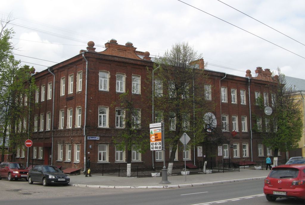 Предмет охраны памятника градостроительства и архитектуры включает в себя следующие характеристики: Стилистическая характеристика: памятник гражданской архитектуры, построенный в неорусском стиле; Градостроительные характеристики:- местоположение: памятник расположен в центре г. Владимира, по линии застройки ул. Большая Московская и ул. Кремлевская, занимает угловое положение;- силуэт: в плане буква «Г»;- секторы и направления видовых раскрытий, визуальные связи памятника: лучше всего просматриваются левый боковой и главный фасад (с противоположной стороны ул. Большая Московская, от стен Рождественского монастыря);- объемно-пространственная композиция (с исключением пристроек, надстроек и т.д.): параллелепипед, состоящий из нескольких объемов: главного, протяженного объема, вытянутого вдоль ул. Большая Московская, и примыкающих к нему объемов по ул. Кремлевская и по дворовому фасаду, в глубине участка;- высотные характеристики: здание трехэтажное;- силуэт и форма крыши: четырехскатная, стропильной конструкции;- конфигурация здания, наличие выступающих и западающих частей по фасадам: здание в плане буква «Г» с протяженным главным фасадом по ул. Большая Московская с центральным ризалитом и входной группой с металлическим навесом;- композиция и архитектурно-художественное оформление фасадов: оконные проемы полуциркульной формы расположены ритмично, часть оконных проемов первого этажа декорирована замковыми камнями, веерная выкладка над верхней частью оконных проемов; центральный ризалит главного фасада, сложного рисунка междуэтажный карниз, оделяющий первый этаж от верхних; металлический навес над входной дверью главного фасада, декоративные фронтоны на крыше фасадов, смещенные к краям здания; угловые пилястры на уровне третьего этажа здания; плоские лопатки, членящие второй и третий этажи уличных фасадов здания;- виды обработки фасадной плоскости: кирпич без отделки;- колористическое решение: фасады здания не оштукатурены, имеют цвет темного глиняного кирпича;- пространственно-планировочная структура интерьеров: коридорная схема;Конструктивные элементы:- фундамент: кирпичный, бутовый, ленточный;- капитальные стены: цоколь – кирпичный, стены - глиняный кирпич на известковом растворе;- перекрытия: сводчатые, плоские;- крыша: четырехскатная, покрыта кровельной сталью по деревянным стропилам и обрешетке; - проемы дверные и оконные: дверные проемы прямоугольной формы, заполнения – деревянные двери; оконные проемы полуциркульной формы, заполнения – деревянные рамы с переплетами; Историческая функция: общественная постройка.