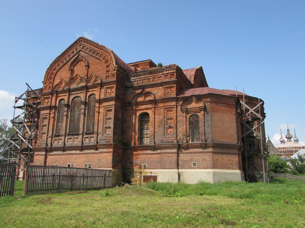 Предмет охраны памятника градостроительства и архитектуры включает в себя следующие характеристики:Стилистическая характеристика: представляет собой интересный пример культовой постройки начала ХХ в., выполненной в «русском» стиле.Градостроительные характеристики: - местоположение: в центральной исторически сложившейся части Юрьев - Польского, на территории кремля в непосредственной близости от древнего Георгиевского собора, в 10-15 м к северу;- секторы и направления видовых раскрытий, визуальные связи памятника: хорошо просматривается со всех четырех сторон света;- силуэт: в плане здание имеет крещатую форму: к прямоугольнику основного объема с востока примыкает трехчастная апсида, у которой центральная часть в плане представляет полукруг, а боковые имеют граненую форму; с запада к основному объему примыкает небольшая прямоугольная в плане паперть; с севера и с юга прямоугольник основного объема имеет два выступа;Архитектурные характеристики:- объемно-пространственная композиция: в пространственно-объемной композиции выделен высокий бесстолпный четверик основного объема; памятник выстроен на высоком основании; в цокольной части расположено помещение теплой церкви;- силуэт и форма крыши: четырехскатная;- композиция и архитектурно-художественное оформление фасадов: декоративное оформление выполнено в «русском» стиле; лопатки украшены профилированными ширинками; оконные проемы украшают килевидные наличники; завершение четверика повторяет позакомарное покрытие древнерусских храмов; вдоль всего памятника проходит орнаментальная полоса карниза, состоящая из профилированных ширинок; лопатки в верхней части украшены изображением крестов; паперть под шатровой крышей украшена «висягами»;- виды обработки фасадной плоскости: необработанный кирпич;- пространственно-планировочная структура интерьеров: помещение основного объема соединяется с апсидой арочными проемами (арочные проемы выделены лепниной); основным ядром планировочной структуры нижней церкви является длинное прямоугольное помещение, соединенное с небольшими сравнительно помещениями прямоугольными проемами; Конструктивные элементы:- фундамент: булыжный;- капитальные стены: глиняный кирпич на цементном растворе (размер кирпича 250х70х120);- перекрытия: переход от четверика к барабану осуществляется за счет парусов; купол опирается на четыре перекрещивающиеся друг с другом подпружные арки; апсида перекрыта конхой, такое же покрытие имеет паперть, которая в свою очередь перекрыта бетонной плитой, опирающейся на двутавровую балку, где располагались хоры; своды в нижней церкви ребристые по балкам, плоские или по типу парусного свода, усиленного ребрами жесткости, положенными по диагонали;- кровельное покрытие: кровельная сталь;- проемы дверные и оконные: оконные проемы арочной формы, заполнения – деревянные рамы с переплетами, металлические решетки, дверные проемы прямоугольной формы, заполнения – двупольные деревянные двери; оконные проемы нижней церкви прямоугольной формы с широкими откосами, заполнения – двойные деревянные рамы и металлические решетки;- полы: пол сложен из метлахской плитки; в нижней церкви – цементный;- лестницы: с юго-западной стороны находится винтовая лестница, ведущая на хоры.