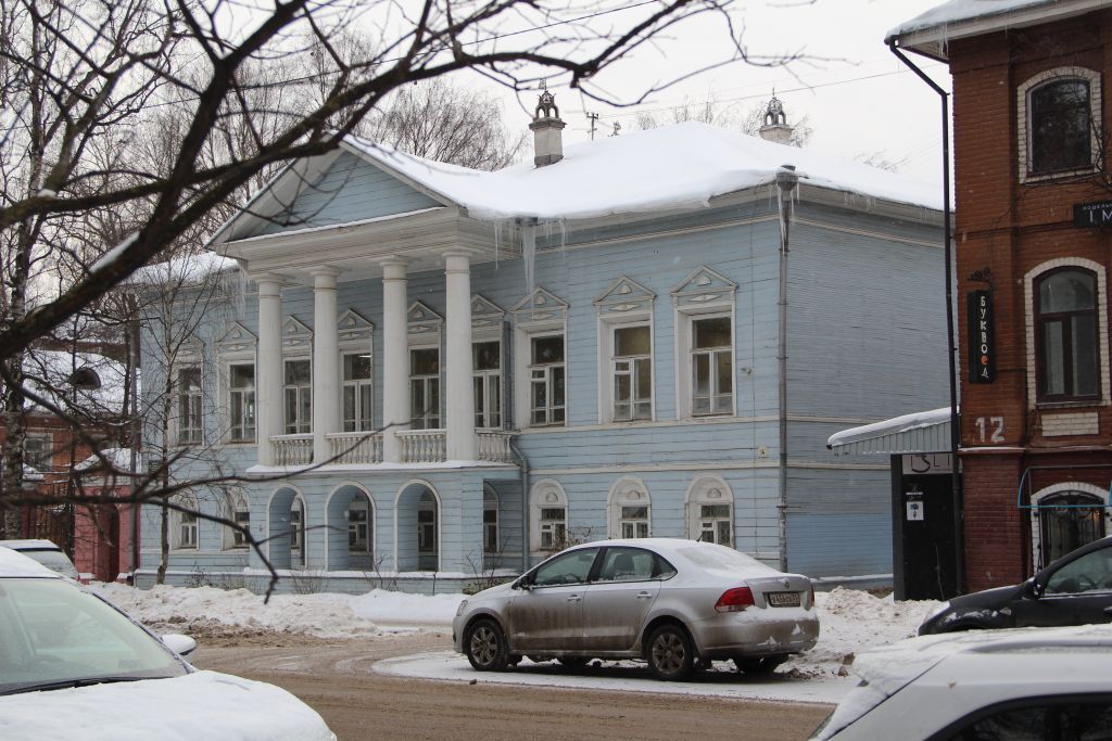 Градостроительное значение:- особая градостроительная роль здания в формировании застройки исторической центральной части города Вологды - Нижнего посада;- роль фасадов здания в формировании сложившейся исторической линейно-пространственной структуры площади Революции и развёртки улицы Советский проспект, ограниченной улицами Марии Ульяновой и Предтеченской.Объемно-пространственная и конструктивная схема: - деревянное здание с железной вальмовой кровлей и балконом с балюстрадой в центре главного (северо-восточного) фасада; главный фасад здания в два этажа, за счет понижения части перекрытий второго этажа половина дома, выходящая во двор, трехэтажная; - размеры здания:а) основные габариты плана: 21,0 х 18,0 м (данные паспорта научного учёта, 1976 г.);б) высотные отметки: +7,8 м от верхней отметки цоколя до подшивки карниза основного объёма;- исторические конструкции здания:а) фундамент: бутовый, ленточный;б) цоколь – обшитый доской, окрашенв) стены: деревянные рубленные, обшитые профилированной доской и окрашенные, внутри - отштукатуренные;г) перекрытия в исторических отметках: перекрытия плоские по деревянным балкам, оштукатуренные;д) конструкция полов – деревянные;е) материал стропильных конструкций (дерево);ж) конфигурация кровли: вальмовая;- характер и расположения входов в здание: главный вход в здание в боковом (юго-восточном) фасаде, ведущий на второй этаж; второй вход на северо-западном фасаде;- покрытие кровли: кровельное железо.Композиция и архитектурно-художественное оформление фасадов:- внешний облик исторического объема здания и его частей, декоративное убранство фасадов;а) тип обшивки фасадов - горизонтальная профилированная доска;б) горизонтальные членения фасадов:- тянутые пояса в виде полочки (подоконные, межэтажный, над окнами второго этажа);- венчающий карниз большого выноса;- карнизный свес кровли с балкона;в) вертикальные членения фасадов:- выступающий четырехколонный портик, завершенный треугольным фронтоном и поставленный на аркаду нижнего этажа;г) местоположение, пропорции и исторические размеры, материал (дерево), рисунок расстекловки, форма оконных проемов:- полуциркульные окна первого этажа главного (северо-восточного) фасада и три окна на юго-восточном фасаде, обрамленные тонкими наличниками с резными накладками в тимпанах арок;- высокие прямоугольные окна во втором этаже главного (северо-восточного) фасада и три окна на юго-восточном фасаде, обрамленные тонкими наличниками с резными накладками в тимпанах фронтонов;- прямоугольные окна юго-западного, северо-западного и юго-восточного фасадов, обрамленные тонкими наличниками;- небольшие квадратные окна юго-западного и юго-восточного фасадов, обрамленные тонкими наличниками;- полуциркульное чердачное окно дворового фасада;д) выступающий четырехколонный портик, завершенный треугольным фронтоном и поставленный на аркаду нижнего этажа; е) ограждение балкона главного (северо-восточного) фасада на втором этаже деревянными перилами с точеными балясинами;ж) печные трубы.Планировочная структура и элементы архитектурного оформления интерьеров здания:- планировочная структура:а) историческая планировка здания в капитальных стенах;- элементы архитектурного оформления интерьеров здания:а) потолочные тяги в помещениях второго этажа;б) деревянные фи