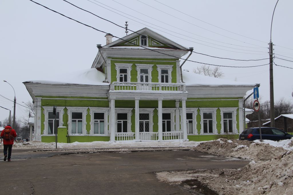 1.Объемно-пространственная и конструктивная схема:-здание одноэтажное с мезонином, прямоугольное в плане, с примыкающими к нему помещениями ритерад и кладовых с северо-востока; на кирпичном цоколе, бревенчатое, с обшивкой профилированной доской;-размеры здания, основные габариты: основной объем: 16x21 м, основной объем с северо-восточной пристройкой - 24x28 м, мезонин - 7x16 м; высотные отметки;-исторические конструкции: капитальные стены; тип и конструкция перекрытий, стропильная система;-конфигурация кровли и характер кровельного покрытия: двускатная кровля мезонина, трехскатные кровли боковых частей дома.2.Композиция и архитектурно-художественное оформление фасадов:-внешний облик всего здания и отдельных частей;-местоположение, размеры и форма оконных и дверных проемов, тип, рисунок и материал окон и дверей;-четырехколонный портик главного фасада, поддерживающий балкон;-мезонин в три окна, завершенный треугольным фронтоном с окном и полуциркульным архивольтом в тимпане;-дощатые картелированные пилястры с витыми полуколоннами по углам здания;- деревянный подоконный фриз по периметру здания;-многообломный венчающий карниз, набранный из резных досок;-балюстрада с точеными балясинами на балконе мезонина;-наличники окон, украшенные сквозной резьбой и объемными деревянными накладками;-водоприемные воронки, украшенные просечным железом;-восьмигранные печные трубы с выступающей цокольной частью и карнизом с сухариками;-три арочных проема цокольной части портика;-расположение и форма слуховых и чердачных окон кровли;-профили тяг, пилястр, накладок, наличников, декоративных элементов.3.Планировочная структура и элементы архитектурного оформления интерьеров здания:-планировка здания в капитальных стенах;-внутренняя двухмаршевая лестница, ведущая в мезонин, с точеными балясинами в ограждении;-расположение и габариты дверных проемов (согласно первоначальной анфиладной системы планировки);-кафельные печи (5 шт.), выполненные в классическом стиле с изразцовыми накладками сложной конфигурации и камин (1 шт.): кирпичная диагональная печь в южном помещении мезонина со вставками из фасонного кирпича; печь и камин в зале с высокими подиумами и зеркалами, завершающимися карнизами с аттиками; левая кафельная печь гостиной с высокой цокольной частью, раскрепованной под лопатками, переходящими в арку с завершением в виде треугольного фронтона с аттиком; правая печь представляет собой арочный портик с треугольным фронтоном и модульонами на карнизе, коринфские колонны портика опираются на высокий постамент;-наружные и внутренние филенчатые двери, двустворчатые готические двери с восьмигранными филенками и накладками в анфиладе парадных комнат, двустворчатые готические двери мезонина, одностворчатая филенчатая дверь с фистончатыми накладками между сенями и анфиладой;-тянутые потолочные карнизы большого выноса.