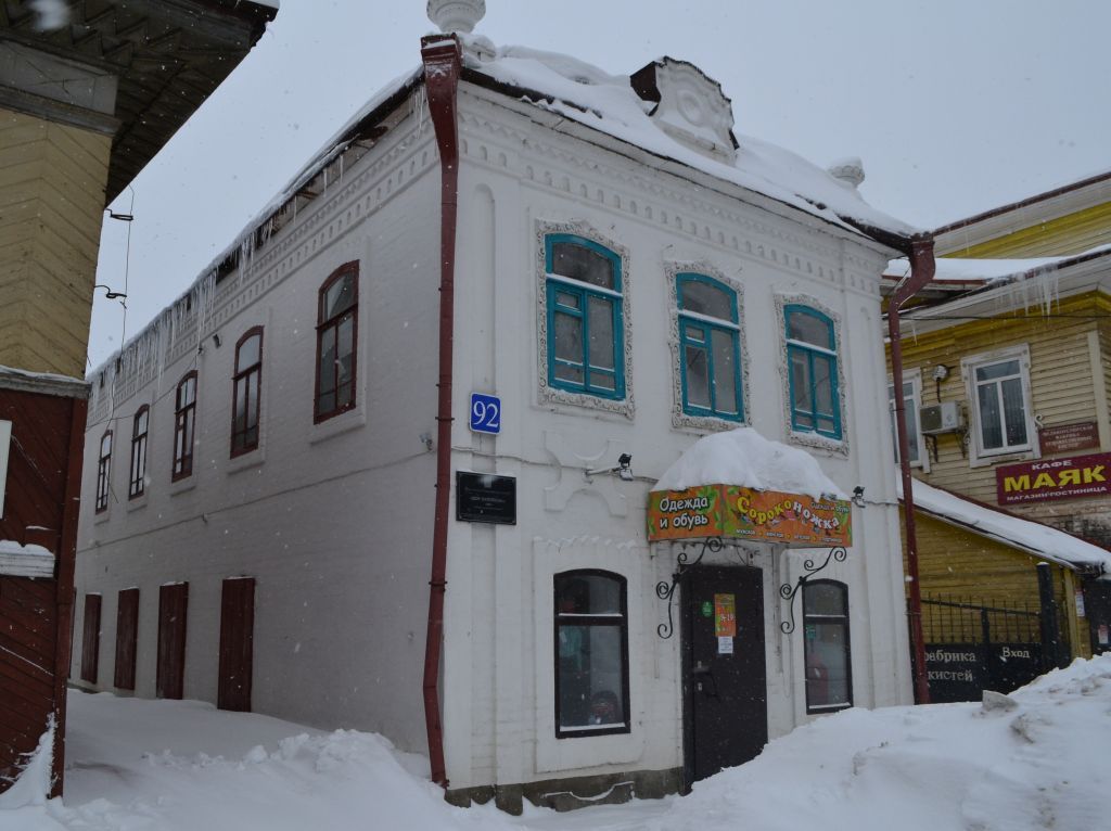 Градостроительное значение:- градостроительные характеристики и местоположение здания по ул. Красная, его роль в формировании структуры застройки квартала;- роль фасадов здания в формировании сложившейся исторической линейно-пространственной структуры в развертке ул. Красная - между Октябрьским переулком и улицей Луначарского.Объемно-пространственная и конструктивная схема:- редкий для Великого Устюга тип двухэтажного каменного магазина со складом, выстроенный в нарядных формах эклектики с необычным сочетанием кирпичного декора и деревянной резьбы; в плане - сильно вытянутый вглубь участка прямоугольник, выходящий узким торцевым фасадом на улицу;- размеры здания:а) основные габариты плана: 26 х 7 м (данные паспорта научного учета, 1971 г.);б) высотные отметки: исторические (уточнить при дополнительном обследовании);- исторические конструкции здания:а) фундамент – бутовый, ленточный;б) стены: кирпичные, с известковой обмазкой, окрашенные;в) перекрытия в исторических отметках: подвал - своды Монье, «сени» подвала – коробовый свод; междуэтажное перекрытие – плоское по деревянным балкам, чердачное перекрытие – своды Монье;г) конструкции полов – деревянные;д) конфигурация кровли – вальмовая;- характер и расположение входов в здание: входы в здание, располагающиеся по центру уличного фасада;- покрытие кровли: кровельное железо с покраской.Композиция и архитектурно-художественное оформление фасадов:- внешний облик исторического объема здания и его частей, декоративное убранство фасадов:а) горизонтальные членения фасадов:- фигурные «накладные доски», расположенные по осям между проемами первого и второго этажей;- венчающий карниз, раскрепованный на лопатках и усложненный зубцами и арочными нишками;б) вертикальные членения фасадов:- широкие филенчатые лопатки на углах здания;в) местоположение, пропорции и исторические размеры, материал (дерево), рисунок расстекловки, форма оконных проемов:- юго-восточный фасад дома, решенный в девять оконных осей, северо- восточный – в три оконных оси;- кирпичные рамочные наличники, сочетающиеся с зубчатыми наложенными поверх них деревянными наличниками с затейливой объемной резьбой растительно-геометрического орнамента;- окна второго этажа восточного фасада, заключенные в рамочные наличники с зубчатым верхом;г) местоположение, пропорции и исторические размеры, материал (дерево), вид и форма входных проемов – внутренняя деревянная входная дверь; д) парапет ажурной кованой решетки с фигурным аттиком в центре и вазонами на углах;е) ажурные водосточные трубы.Планировочная структура и элементы архитектурного оформления интерьеров здания:- историческая планировка здания в капитальных стенах;- элементы архитектурного оформления интерьеров здания:- деревянная филенчатая дверь;- подставы внутренних ставней, латунная фурнитура;- деревянная междуэтажная лестница с деревянным ограждением.