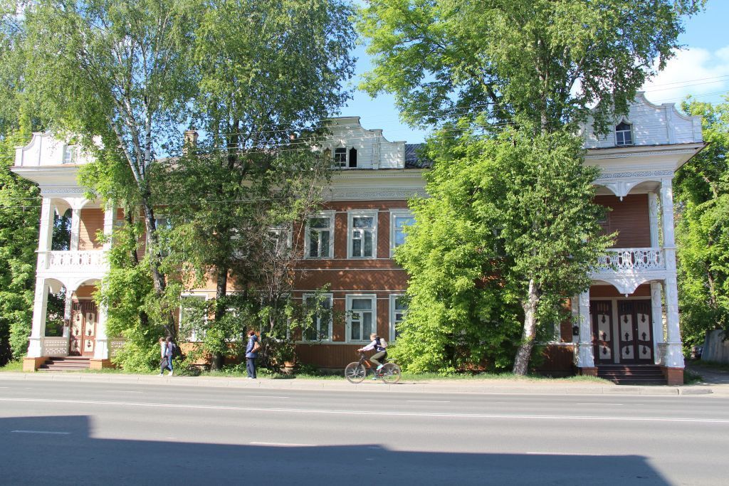 Градостроительное значение: - является частью фронтальной застройки по проспекту Победы; - является градоформирующим элементом в центральной части города;- формирует сложившийся силуэт в развертке проспекта Победы.Объемно-пространственная и конструктивная схема:- здание двухэтажное, деревянное, рубленное «в обло», прямоугольное в плане;- размеры здания: габариты основного объема без входных групп 25х13м, объем входных групп 3,2х2,7м, высотные отметки;- расположение и характер входов в здание: два симметричных парадных входа в здание со стороны проспекта Победы;- исторические конструкции (тип, конструкция и материал наружных и внутренних капитальных стен, перекрытий, стропильной системы; конфигурация кровли).Композиция и архитектурно-художественное оформление фасадов:- внешний облик всего здания и отдельных частей, декоративное убранство фасадов;- местоположение, размеры и форма оконных и дверных проемов, слуховых окон на крыше, материал окон и дверей;-фигурные изогнутые аттики с вытянутыми окошками, венчающие боковые крыльца-балконы, а также центральную ось главного фасада;- материал и характер отделки фасадных поверхностей;- невысокий выступающий цоколь;- венчающий карниз значительного выноса с профилем «выкружки-повалом»;- подкарнизный фриз и подзоры по периметру фасадов, украшенные пропильной резьбой.- междуэтажный пояс и межоконные простенки с обшивкой «в елочку» на главном фасаде;- рамочные наличники оконных проемов, объединенные горизонтальной тягой;- два симметричный боковых парадных крыльца-балкона, оформленные полуарками с висячими гирьками по центру.- двустворчатые наружные филенчатые дверные полотна со стеклянными филенками и декором в виде объемных стилизованных виноградных гроздей.- балконные ограждения с узором в стиле модерн с силуэтами древнегреческих лир.Планировочная структура и элементы архитектурного оформления интерьеров здания:- планировка здания в капитальных стенах: симметричная секционная планировочная структура, относительно поперечной стены, с самостоятельными входами с улиц на каждый этаж;- характер и местоположение внутренних лестниц ведущих на второй этаж.