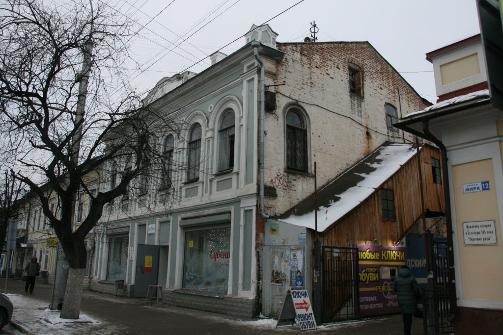 Объемно-пространственная и планировочная композиция здания: дом двухэтажный кирпичный (основные габариты 14х 13 м) с трехэтажной северо-восточной частью (две оси окон) в торцевой и дворовой части, с симметричной планировкой в границах капитальных стен, расположенный на красной линии ул. Мира и выходящий на нее торцевым фасадом; градостроительные характеристики здания как важного градообразующего элемента, формирующего фронт улицы в исторической среде города; границы территории памятника и планировка территории в данных границах. Строительные конструкции: материал и конструкция стен, конфигурация крыши и характер кровельного покрытия: кровля вальмовая железная; плоские деревянные перекрытия, потолочные тяги по 1-му этажу здания. Композиция и архитектурно-художественное оформление фасадов: декоративное убранство фасадов: венчающий карниз по периметру здания, фриз, выступающий цоколь; местоположение, размер, форма и оформление оконных и дверных проемов; профили тяг, лопаток, наличников. Симметричное решение главного фасада: аттик и столбики ограждения на кровле, филенчатые угловые пилястры с капителями, арочные оконные проемы с филенками под подоконной доской, архивольты, филенчатые пилястры с капителями в межоконных простенках, лепной декор в виде колец; дверные проемы и витринные оконные проемы с профильным рамочным обрамлением на 1-м этаже, деревянные столярные заполнения оконных проемов по главному фасаду. Цветовое решение фасада здания, предполагающее использование пастельных тонов для основной плоскости фасадов и белого цвета - для архитектурных деталей, элементов декора.