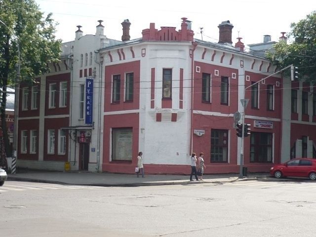 Объемно-пространственная и планировочная композиция здания: Здание расположено на красной линии ул. М. Ульяновой и ул. Козленской, является важным градообразующим элементом, закрепляющим угол квартала в исторической среде города. Объемно-планировочное решение здания, этажность, габаритные размеры 28х22, высотные отметки. Границы придомовой территории, планировка территории. Строительные конструкции: Двухэтажное кирпичное здание с 2-мя подвальными помещениями и железной вальмовой кровлей. Часть западного крыла здания имеет третий этаж. Характер обработки фасадной поверхности -:- окрашенный глиняный кирпич, 26х13х6. Конструкция и характер связей капитальных стен, конфигурация крыши, тип и материал кровельного покрытия. Композиция и архитектурно-художественное.оформление фасадов: Здание является одним из немногочисленных образцов стиля «модерн» в г. Вологде. Цветовое решение: окраска главных фасадов в цвет глиняного кирпича с белыми деталями. Декор фасадов составляют следующие архитектурные детали: выступающий цоколь; профилированный карниз между .первым и вторым этажом; венчающий карниз по периметру здания, оформленный декоративными кронштейнами; плоские лопатки, членящие здание' по вертикали; аттики арочной формы, завершающие плоские ризалиты северо-восточного и северо-западного фасадов; аттик прямоугольной формы с вазонами на угловой части здания; эркер в уровне второго этажа угловой части здания. Местоположение, размер, форма оконных и дверных проемов: витринные проемы первого этажа здания, сдвоенные оконные проемы с декоративными нишами под подоконной доской, оконный проем эркера. Дверной проем с декоративным козырьком на кованых кронштейнах, оконный проем лестничной клетки, три арочных проема, декоративные ниши на ризалите северо-восточного фасада. Оконные проемыв три оси на ризалите северо-западного фасада: в уровне первого этажа проемы визуально представляют собой единое целое, окно неправильной формы в стиле «модерн»; в уровне второго этажа окна прямоугольной формы с западающим арочным завершением; окна третьего этажа на аттике также имеют арочное завершение. На дворовом фасаде имеется балкон с кованым декоративным ограждением. Пространственно-планировочная структура и элементы архитектурного Qформления интерьеров здания: Здание коридорного типа с выходами на три лестничные клетки. Торцовая стена западного крыла здания является брандмауэром. В интерьере сохранились тянутые потолочные карнизы, внутренние лестницы с кованым ограждением.