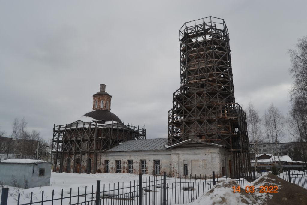 Градостроительное значение:- является градоформирующим элементом в заречной части города Вологды;- является высотной доминантой в застройке заречной части города Вологды;- перспектива и визуальные коридоры обозрения церкви: вдоль ул. Некрасова, ул. Комсомольской;- силуэт церкви в развертках ул. Некрасова, ул. Комсомольской.Объемно-пространственная и конструктивная схема:- исторические конструкции: фундаменты – ленточные бутовые, тип, конструкции и материал наружных и внутренних капительных стен (материал стен – кирпич на известковом растворе), перекрытий, стропильной системы, конфигурация кровли (апсида – пятискатная, четверик – купольная с врезанными по четырем сторонам треугольными фронтонами, трапезная – двускатная, пристройки первого яруса колокольни – вальмовые с фронтонами, завершение колокольни – купол со шпилем, обитым металлом, завершающимся металлическим золоченым русским православным крестом. Высота купола с цилиндрическим барабанчиком в завершении, покрытого металлом по деревянным кружалам – 3,2 м; высота шпиля от верха купола до верха яблока в основании креста – 12,8 м; высота креста – 1,9 м), характер кровельного покрытия;- размеры здания (основные габариты, размеры и высотные отметки отдельных элементов): длина здания – 38 м, ширина – 14 м, высота – 39,6 м; апсида – 8,8 х 6,15 м, высота – 6,8 м; четверик – 9,6 х 11,4 м, высота до верха покрытия купола – 13,7 м, до верха креста с главкой – 23,4 м; трапезная – 15,7 х 11,3 м, высота – 7 м; колокольня с притвором – 14 х 7 м, высота до верха креста на шпиле – 39,6 м;- продольно-осевая трехчастная композиция храма, состоящая из четверика храма, пятигранной апсиды, трапезной и четырехъярусной колокольни;- двухсветный четверик храма, завершенный купольной кровлей со световым восьмигранным барабаном, опирающимся на восьмилотковый свод четверика;- колокольня, два нижних яруса которой представляют собой единый, прямоугольный в плане объём, третий и четвертый ярусы образуют цилиндрический объем;- завершение колокольни в виде купола с глухим барабанчиком и шпилем;- прямоугольные объемы, фланкирующие нижний ярус колокольни с юга и севера, выступающие относительно плоскостей фасадов трапезной;- расположение и характер входов в здание (первый – со стороны западного фасада колокольни, второй – со стороны северного фасада четверика храма); - перекрытия: восьмилотковый свод четверика храма, опирающийся на угловые тромпы, коробовый пятилотковый свод апсиды с распалубками в восточной части; в трапезной и первом ярусе колокольни – плоские.Композиция и архитектурно-художественное оформление фасадов:- внешний облик исторического объема здания и его частей;- историческое местоположение, размеры, форма и материал исторических оконных и дверных проемов;- исторический материал, форма, тип наружных дверных заполнений;- исторический тип, материал и рисунок расстекловки окон;- исторический тип, материал и рисунок оконных решеток;- характер отделки стен – штукатурка, покраска (цвет основной плоскости стен – охра, архитектурных элементов и деталей – белый);- декоративные элементы фасадов:цоколь с обломами характерными для русского барокко в виде обратного каблучка и полувала в нижней части;широкие пилястры четверика храма с профилированными капителями;полуциркульные завершения входного и оконных прое